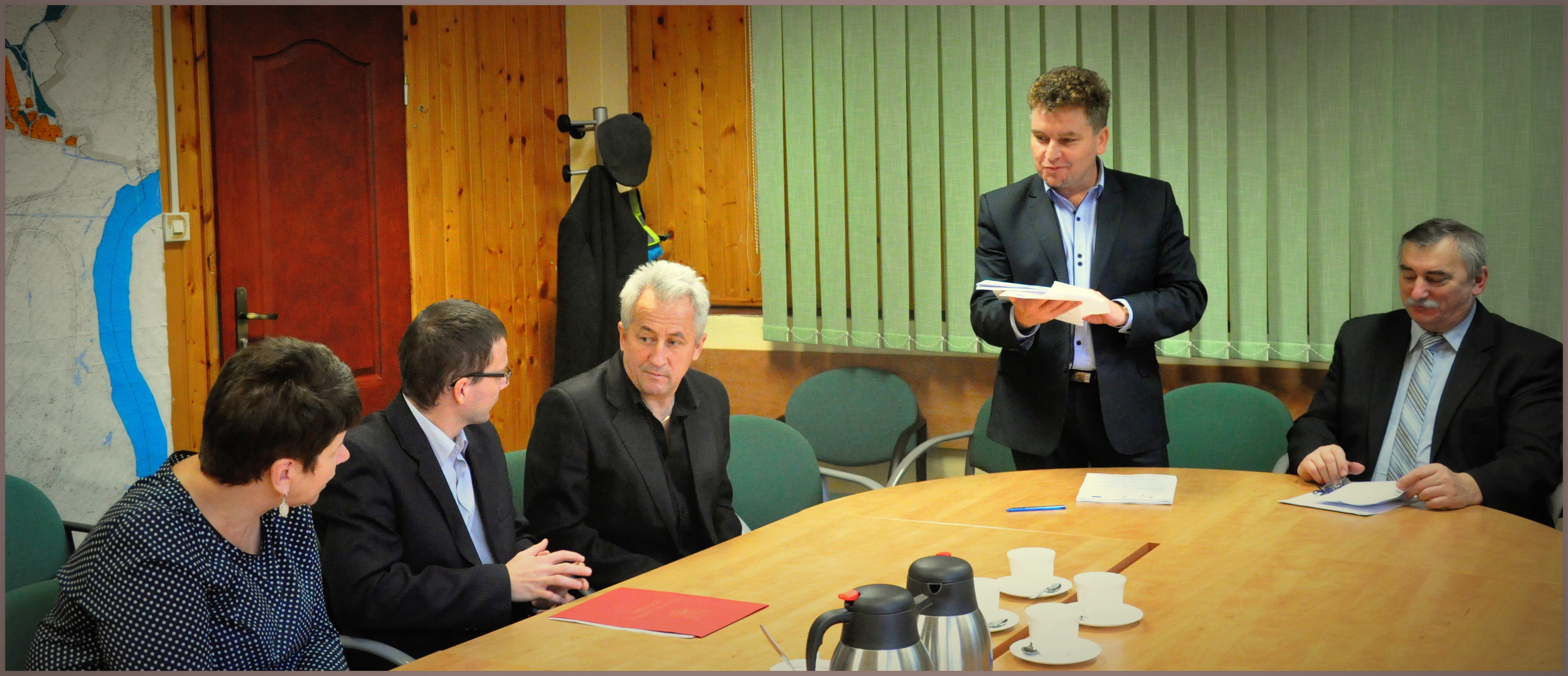 Od lewej: Danuta Bobrowska - kierownik ref. inwestycyjnego w UMiG Połaniec, Rafał Kiliański – pracownik ref. inwestycyjnego, Józef Cichoń – radny Rady Miejskiej, burmistrz – Jacek Tarnowski, wykonawca zadania -Wiesław Kopeć, skarbnik gminy – Małgorzata Żugaj, Zdzisław Kwiatkowski - wiceprzewodniczący Rady Miejskiej, Adam Łańka – radny Rady Miejskiej.