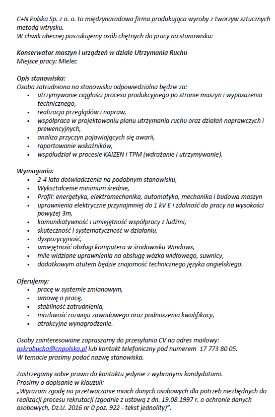 Miejsce pracy: Połaniec (Plac Uniwersału Połanieckiego)