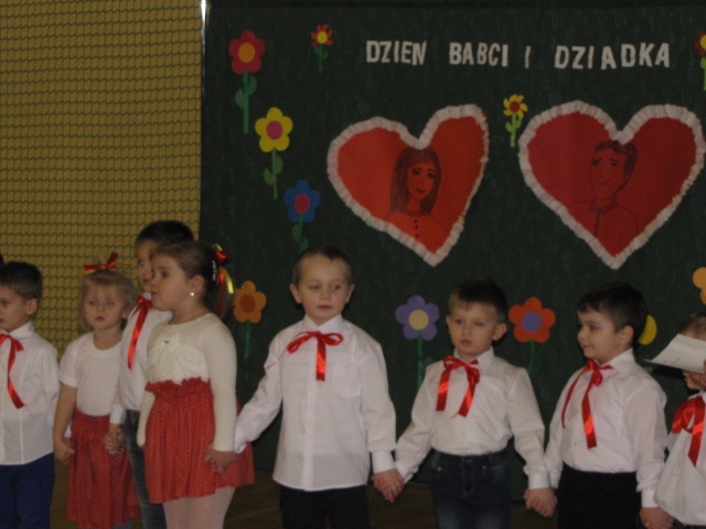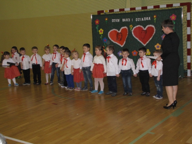 Licznie zgromadzonych gości powitała Pani Dyrektor Elżbieta Juszczyk. Przedszkolaki pięknie recytowały wiersze, radośnie śpiewały piosenki i wesoło tańczyły. Na zakończenie dzieci wręczyły laurki swoim babciom i dziadkom, a następnie wszyscy udali się na przygotowany z tej okazji poczęstunek. Gościom towarzyszyły radość, uśmiech oraz łzy wzruszenia. Ten dzień na długo pozostanie w pamięci zarówno dzieci jak i dziadków.