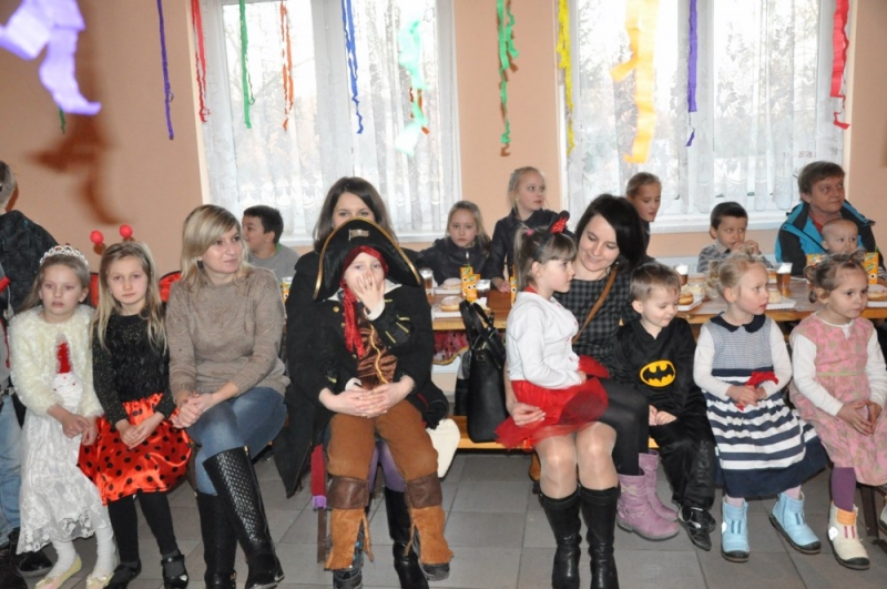 Życzenia wspaniałej karnawałowej zabawy złożył także wszystkim małym i nieco starszym dzieciom Burmistrz Miasta i Gminy Połaniec – Jacek Tarnowski, Przewodniczący Rady Miejskiej –Stanisław Lolo, sołtys miejscowości Rybitwy – Jacek Mazur, opiekunka świetlicowa i przedstawiciele OSP Rybitwy. Nie obyło się również bez wyboru trzech najpiękniejszych strojów karnawałowych. Słodkie paczki powędrowały do Kocurka, Pirata i Myszki. Panie urozmaicały zabawę ciekawymi zabawami. W czasie przerwy dzieci miały czas na słodki poczęstunek. Dodatkowym karnawałowym atrybutem balowym stały się też nadmuchane baloniki, które posłużyły do różnych zabaw. Kolejną atrakcją zabawy karnawałowej była pizza.