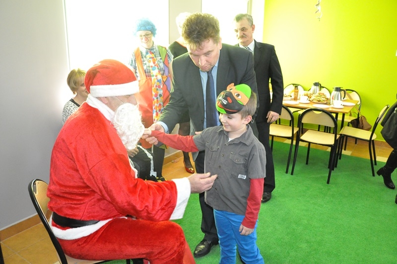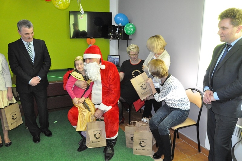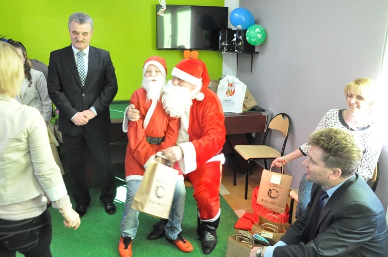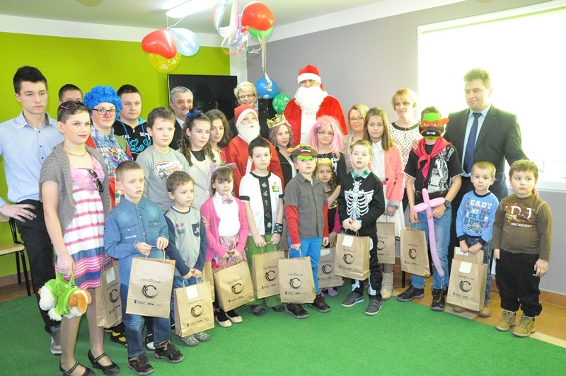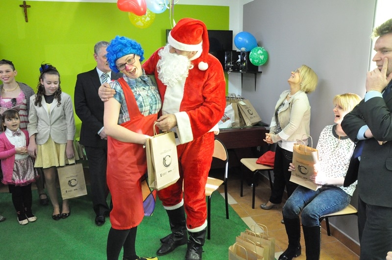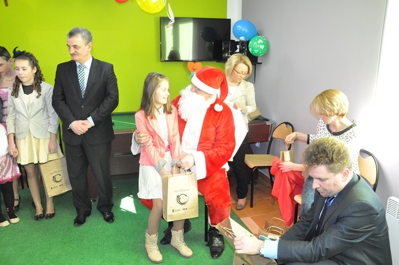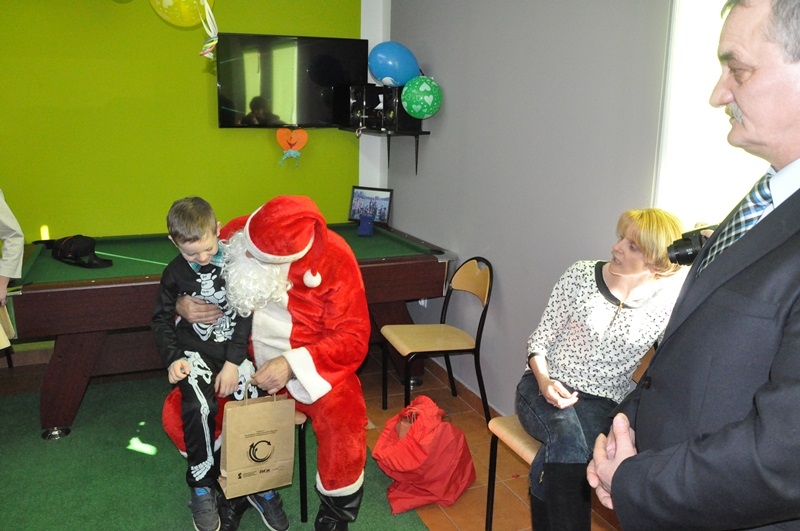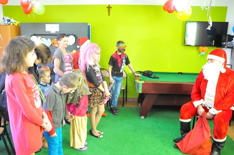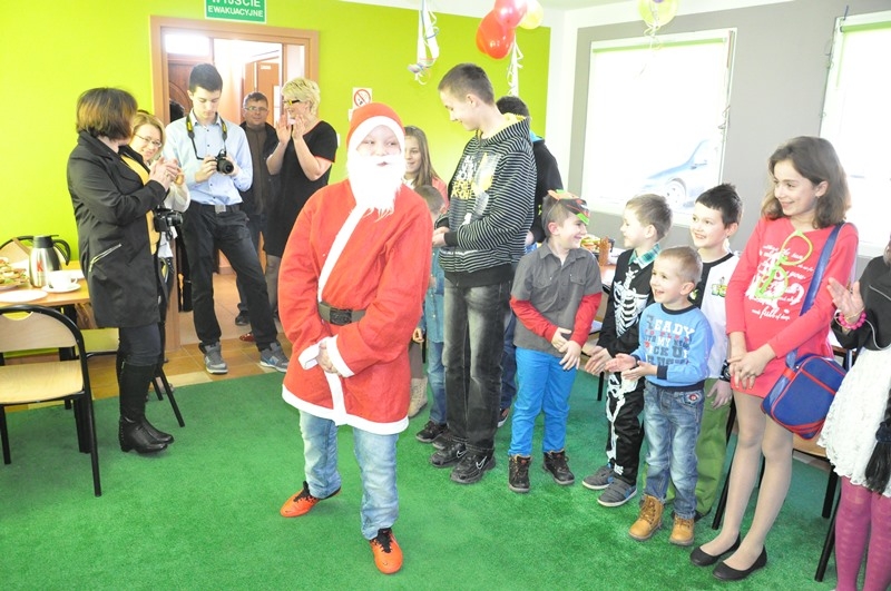 Bal swoją obecnością uświetnił również Święty Mikołaj, który przyniósł ze sobą ogromny worek prezentów. Mikołaj miał także pomocników w osobach zaproszonych gości – Burmistrza Miasta i Gminy Połaniec – Jacka Tarnowskiego, Przewodniczącego Rady Miejskiej – Stanisława Lolo oraz Radnego Rady Miejskiej – Leszka Walczyka. Na ręce wszystkich uczestników imprezy, złożyli oni najlepsze życzenia oraz gratulacje tak dobrej organizacji i pięknej świetlicy. Przebierańcy urządzili pokaz dla Świętego Mikołaja, w którym zaprezentowali swoje stroje. Następnie rozpoczęła się zabawa taneczna, którą poprowadził pięknie ubrany Clown oraz rodzice. Były tańce, zabawy przy muzyce, pląsy, kolorowe peruki, malowanie twarzy i dużo śmiechu. Radości nie było końca...