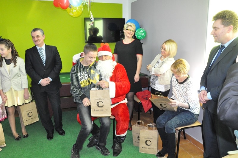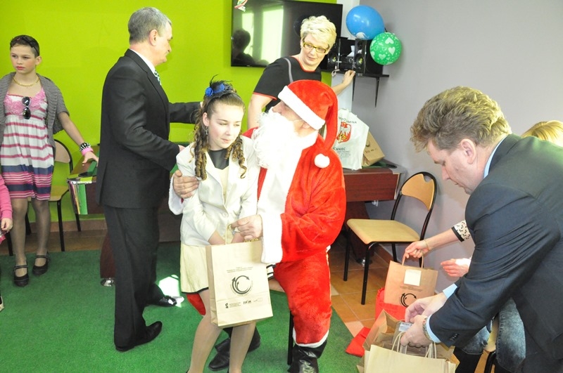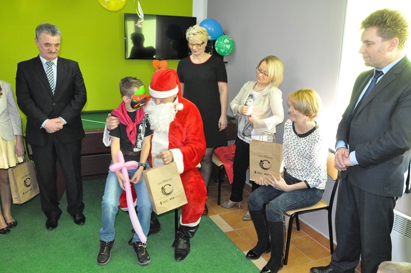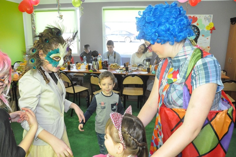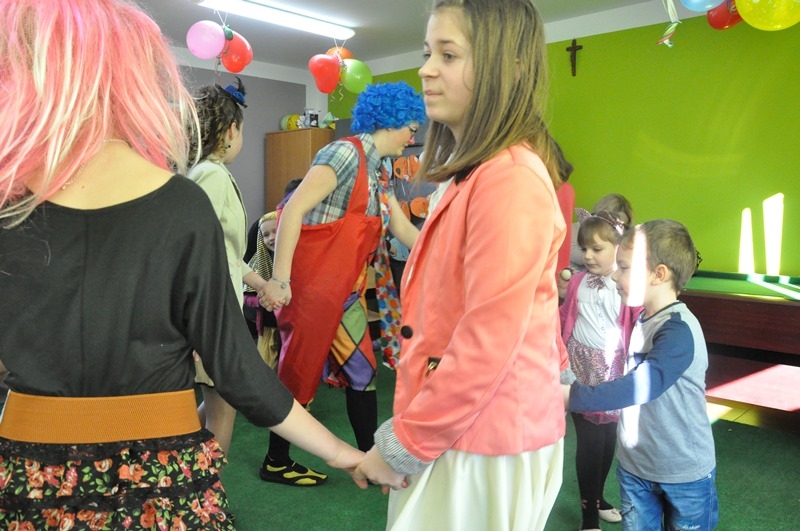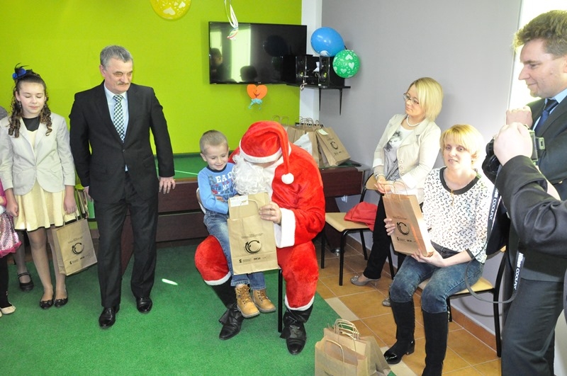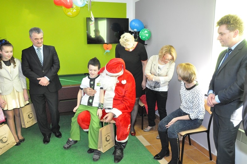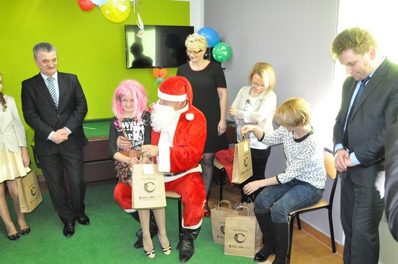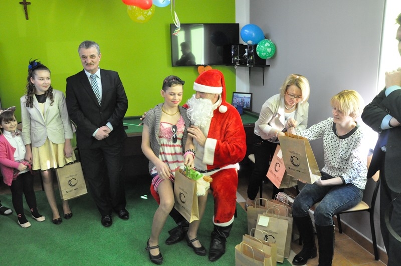 Bal swoją obecnością uświetnił również Święty Mikołaj, który przyniósł ze sobą ogromny worek prezentów. Mikołaj miał także pomocników w osobach zaproszonych gości – Burmistrza Miasta i Gminy Połaniec – Jacka Tarnowskiego, Przewodniczącego Rady Miejskiej – Stanisława Lolo oraz Radnego Rady Miejskiej – Leszka Walczyka. Na ręce wszystkich uczestników imprezy, złożyli oni najlepsze życzenia oraz gratulacje tak dobrej organizacji i pięknej świetlicy. Przebierańcy urządzili pokaz dla Świętego Mikołaja, w którym zaprezentowali swoje stroje. Następnie rozpoczęła się zabawa taneczna, którą poprowadził pięknie ubrany Clown oraz rodzice. Były tańce, zabawy przy muzyce, pląsy, kolorowe peruki, malowanie twarzy i dużo śmiechu. Radości nie było końca...