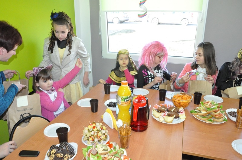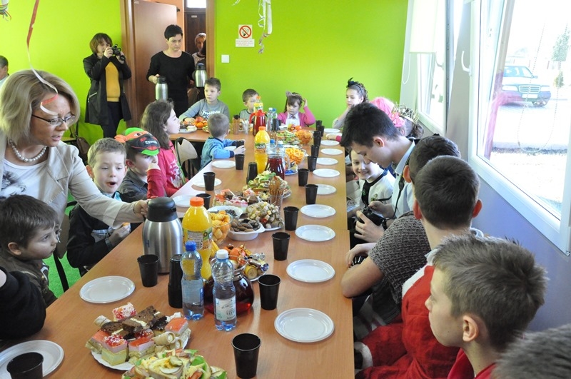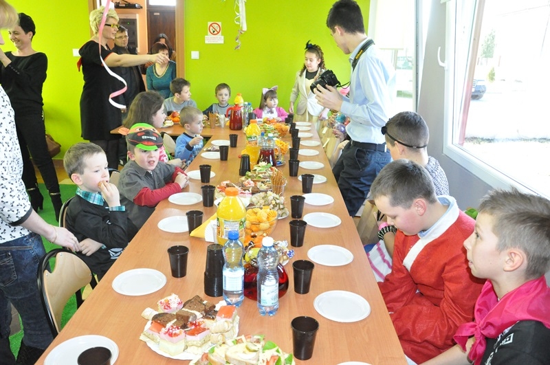 Niesamowitą atmosferę tworzył również wystrój sali, pełen balonów, kolorowych serpentyn i światełek. Do Święta Zakochanych nawiązywały balony w kształcie serca oraz kartki walentynkowe, które dzieci przynosiły do świetlicy przez cały tydzień. Na stołach czekał również poczęstunek dla wszystkich imprezowiczów. Za tę świetną organizację, serdeczne podziękowania, należą się wszystkim zaangażowanych w przygotowanie zabawy choinkowej, a przede wszystkim sponsorom!