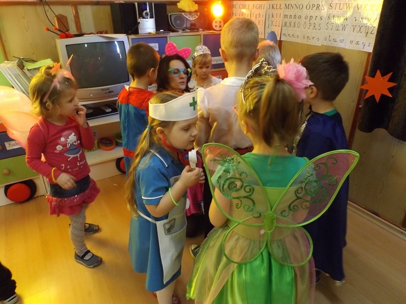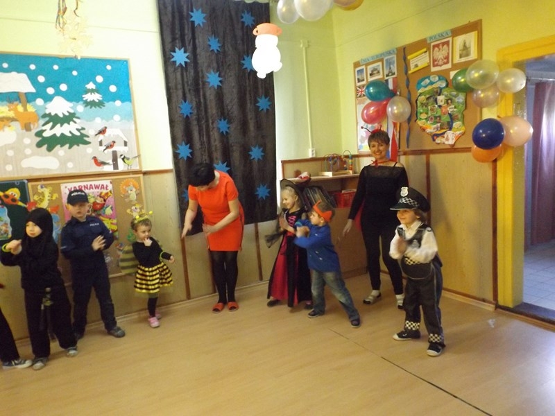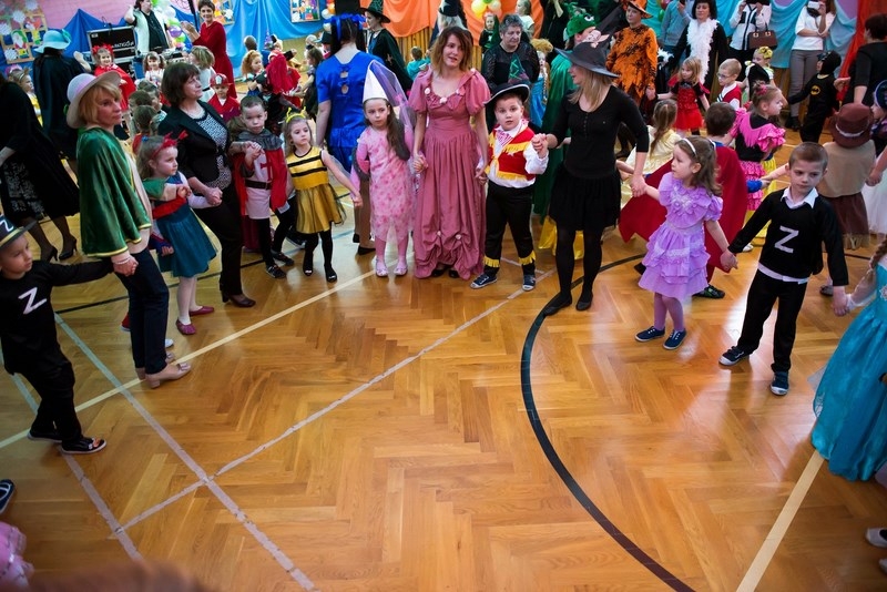 W środę, 11 lutego, od godziny 12.00 zaczęła się zabawa karnawałowa dla dzieci z Przedszkola Publicznego w Połańcu oraz z Przedszkola Publicznego Filia nr 1. Niezliczone księżniczki, czarownice, kowboje, policjanci, wróżki, żabki, biedronki, motylki, krakowianki, myszki, piraci a także inne postacie z kreskówek opanowały na kilka godzin salę gimnastyczną połanieckiego gimnazjum. Nawet pani Dyrektor i panie z grup postanowiły przebrać się, co wywołało jeszcze większy uśmiech na twarzach naszych wychowanków. Całości dopełnił zespół PATIGO, który grał znane wszystkim przedszkolakom piosenki i zabawy oraz prowadził konkursy. Przy takiej muzyce nikt nie mógł się nudzić i narzekać, a dzieci wspólnie ze swoimi paniami bawiły się wyśmienicie. W czasie zabawy każda grupa przedszkolna robiła sobie pamiątkowe zdjęcia oraz poszła na poczęstunek w postaci pysznych oponków i herbatki na szkolną stołówkę. Po takim sytym posiłku muzyka znowu porywała wszystkich do tańca. Kiedy czas zabawy dobiegał końca dzieci z żalem opuszczały salę balową. Zabawa karnawałowa umożliwiła dzieciom i wychowawcom spędzenie czasu w miłej atmosferze a wspólna zabawa przyniosła wiele radości naszym przedszkolakom a to było głównym celem zorganizowanego balu.