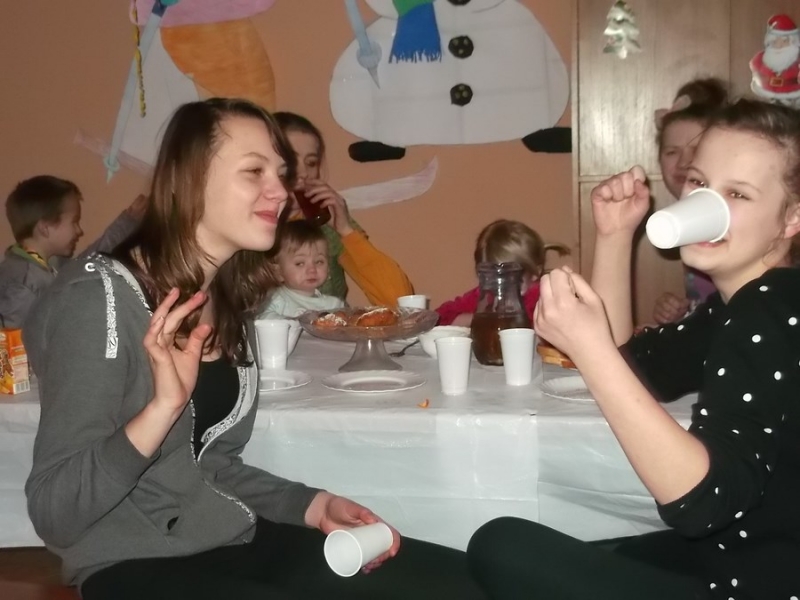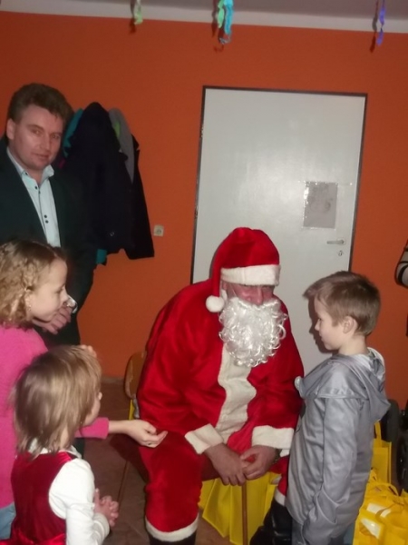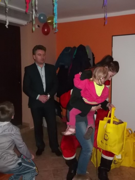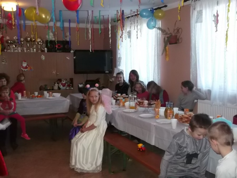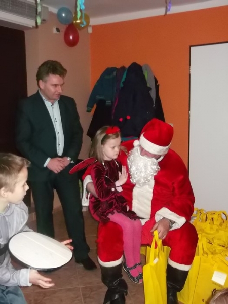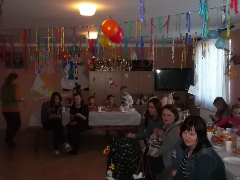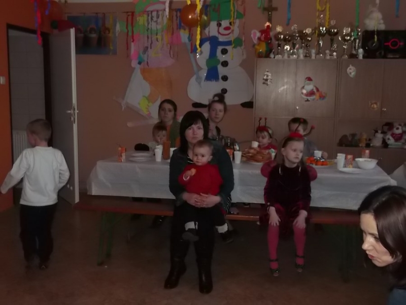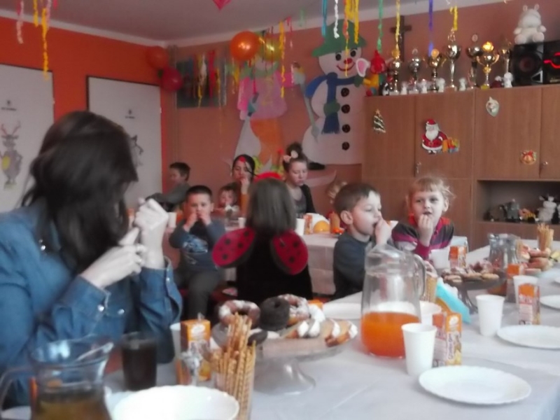 Atmosfera była naprawdę karnawałowa, dzieci poprzebierane były za kolorowe postacie z bajek i filmów. Najwięcej było oczywiście pięknych księżniczek. Dziewczęta i chłopcy nie tylko tańczyli – uczestniczyli również w licznych konkursach i zabawach. Swoje pięć minut mieli ci, którzy chcieli zaprezentować swój kunszt taneczny czy wokalny przed najbardziej wyczekiwanym gościem – św. Mikołajem. Dzieci z niecierpliwością czekały na swoją paczkę i wszystkie dodatkowo pozowały do pamiątkowych zdjęć z Mikołajem. Tego dnia razem z dziećmi we wspólnej zabawie karnawałowej wziął udział burmistrz – Jacek Tarnowski, sołtys - Monika Kurgan i opiekunka świetlicowa - Edyta Spała.