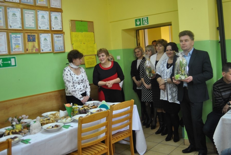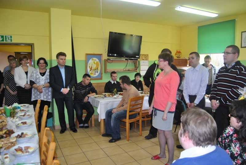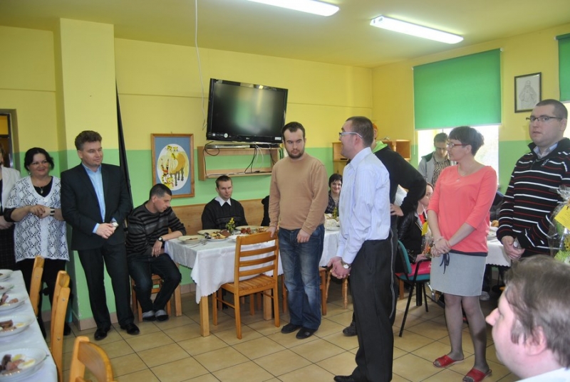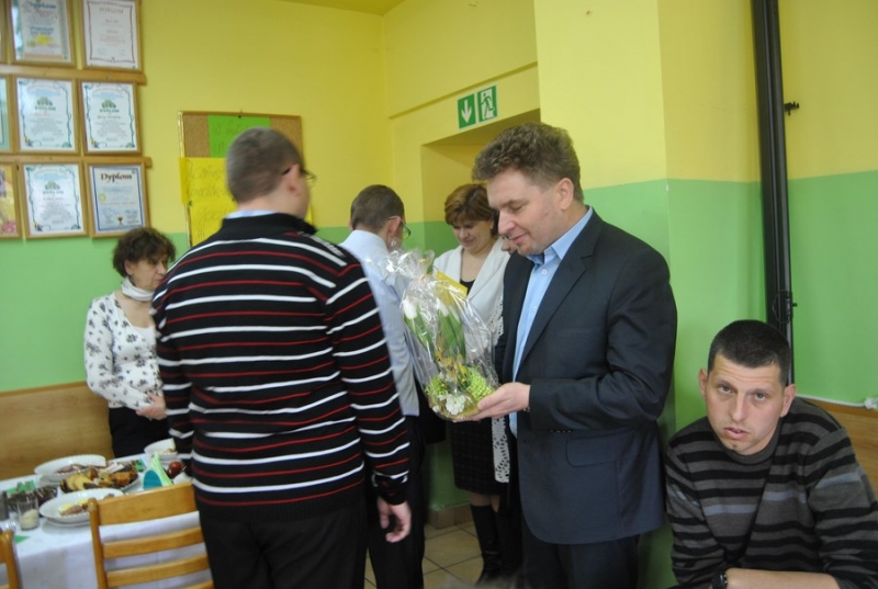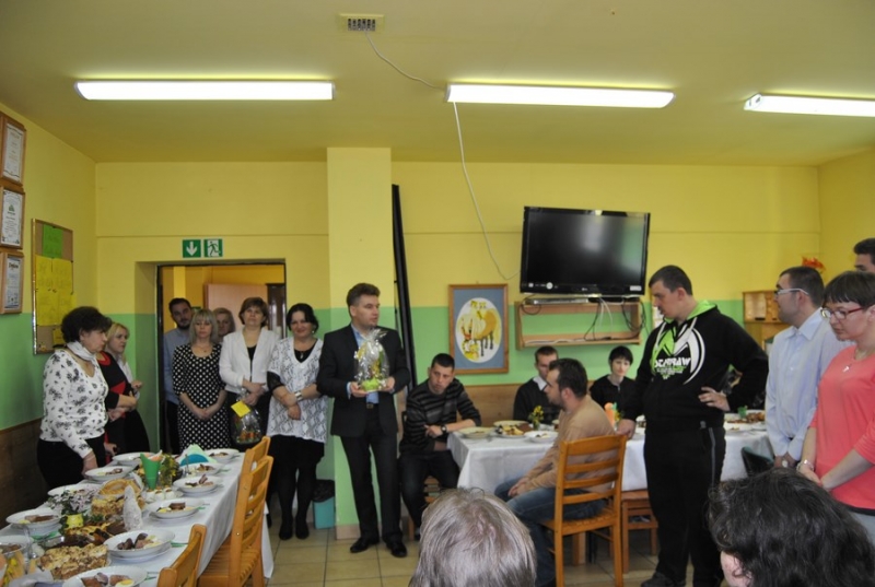 1 kwietnia wszyscy uczestnicy, pracownicy wraz z zaproszonymi gośćmi spotkali się na śniadaniu wielkanocnym w Warsztacie Terapii Zajęciowej. Naszych gości Burmistrza Miasta i Gminy Połaniec Pana Jacka Tarnowskiego i Skarbnik MiG Połaniec Panią Małgorzatę Żugaj przywitali uczestnicy WTZ, którzy złożyli życzenia z okazji zbliżających się Świąt Wielkanocnych oraz wręczyli symbolicznie stroiki wielkanocne.