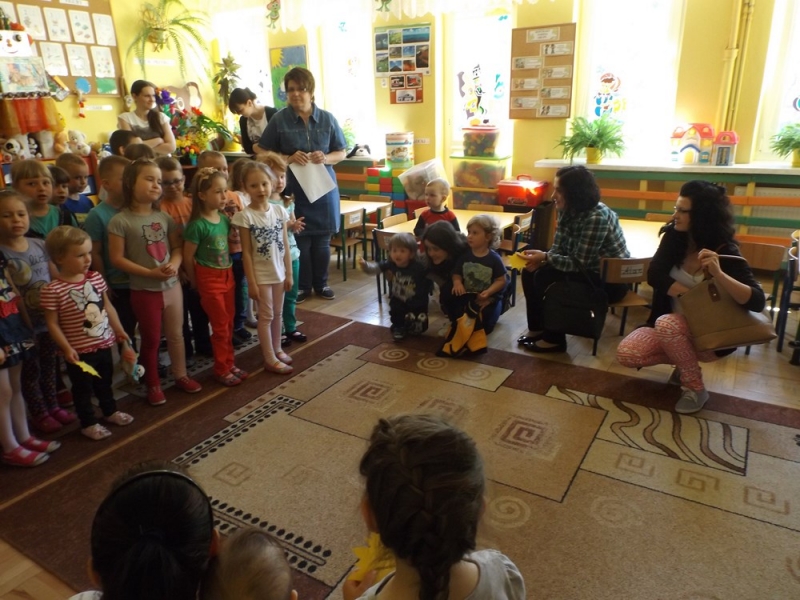 Przekroczenie progu przedszkola dla wielu dzieci staje się poważnym przeżyciem. Te trudne początki na równi z maluchami przeżywają rodzice i dziadkowie. Trzeba pamiętać, że wrażliwa psychika dziecięca wymaga wiele taktu i delikatności, odpowiedzialnych i przemyślanych działań. Dlatego od wielu lat w naszych placówkach organizujemy zajęcia otwarte dla rodziców i przyszłych przedszkolaków w ramach Programu Adaptacyjnego „Pierwszy dzień w przedszkolu”. W tym roku spotkanie odbyło się 12, 13 i 14maja w godzinach 930 – 1030 w najmłodszych grupach i cieszyło się dużym zainteresowaniem. Do przedszkola przybyły dzieci, które będą do niego uczęszczać w roku szkolnym 2015/2016. Niektóre śmiało wchodziły do sali, inne do zabawy trzeba było trochę zachęcić. Były i takie, które wolały tylko obserwować – z mamą i tatą u boku. Dla miłych gości przewidziano wiele atrakcji. Dzieci wraz z rodzicami miały możliwość zwiedzenia przedszkola oraz uczestnictwa w zabawach muzyczno- ruchowych oraz zabawach dowolnych w kącikach zainteresowań. Zadowolenie i uśmiechy na twarzach gości świadczyły o dobrej zabawie. Przyszli wychowankowie podczas swobodnych zabaw mieli okazję zapoznać się z rówieśnikami uczęszczającymi aktualnie do przedszkola. Mogli również oswoić się z nowym miejscem, aby we wrześniu chętnie i bez obaw do niego wrócić. Rodzice przyszłych przedszkolaków mogli porozmawiać z Panią Dyrektor na temat organizacji pracy i funkcjonowania placówki jako środowiska przyjaznego dziecku, otwartego na jego potrzeby oraz wychodzącego naprzeciw oczekiwaniom rodziców. Mieli również zorganizowane spotkanie z psychologiem, pedagogiem i logopedą, podczas którego mogli uzyskać odpowiedzi na nurtujące pytania związane z adaptacją dziecka w przedszkolu.