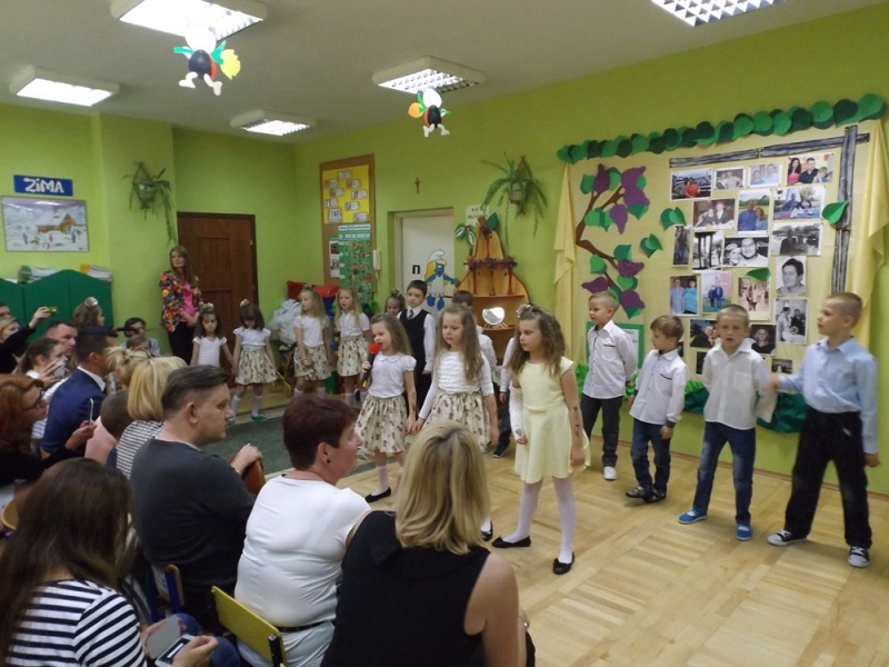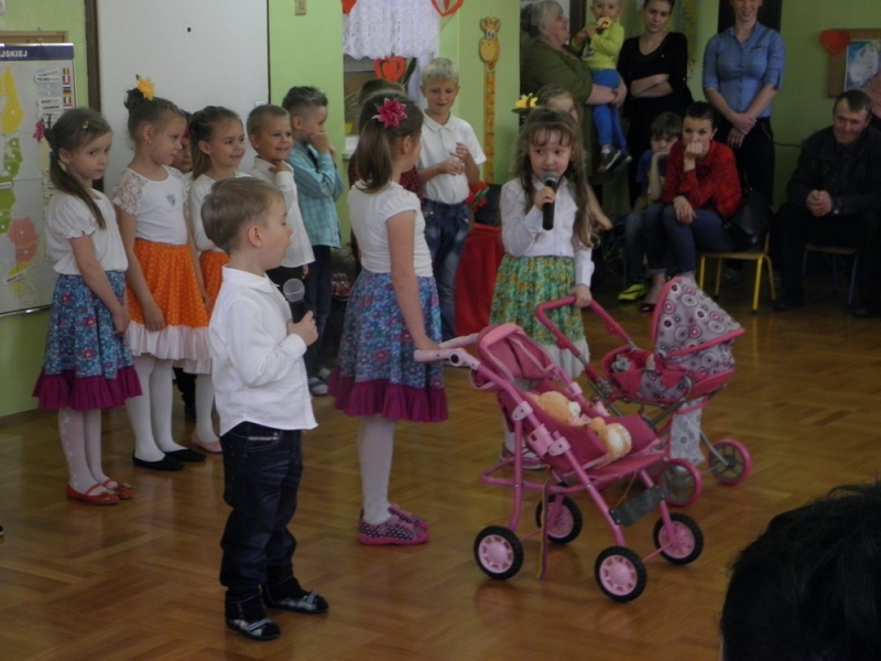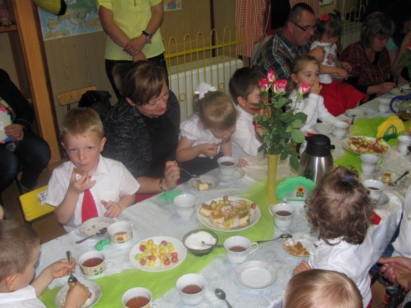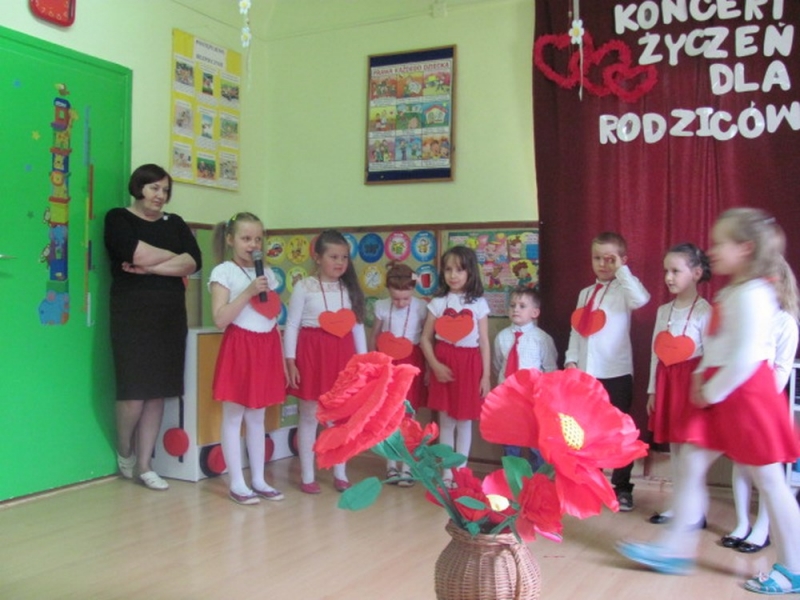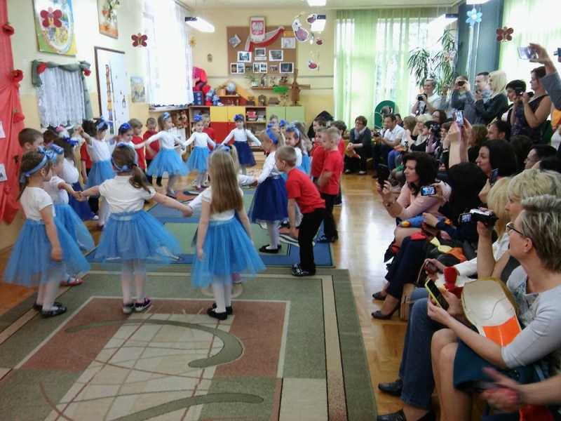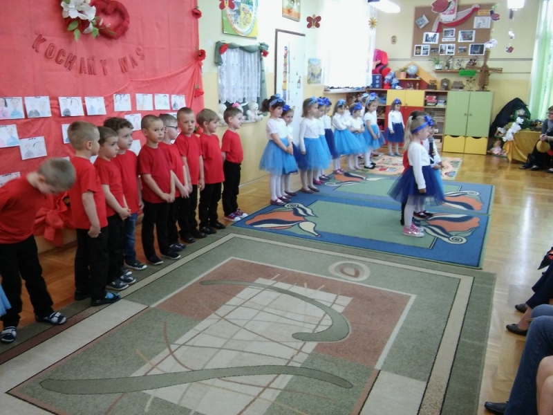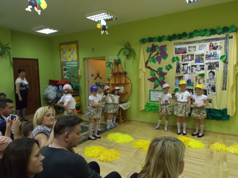 Mama i tata są to wielkie słowa, które posiadają ogromne znaczenie, są bowiem synonimem miłości, szczęścia, a także ciepła rodzinnego. Zaś pierwszymi słowami, które wypowiada każde dziecko w swoim życiu to właśnie: MAMA i TATA. Więź pomiędzy dzieckiem, a rodzicem należy budować, pielęgnować, a także troszczyć się o nią od najmłodszych lat. Gdyż rodzic to najważniejsza osoba w życiu dziecka. Dlatego jak co roku w naszym przedszkolu jest organizowany Dzień Matki i Ojca, dzięki któremu nasze pociechy mogą wyrazić swoją miłość do rodziców.Dzieci zaprosiły swoich rodziców do wspólnego świętowania. Z okazji Dnia Matki i Ojca sala przedszkolna stała się sceną, na której dzieci w pięknych strojach prezentowały programy artystyczne – recytowały wiersze, śpiewały piosenki nie zabrakło też tańców i zabaw. Podczas wręczania własnoręcznie wykonanych laurek całusom i uściskom nie było końca. Po występach wszyscy zasiedli do słodkiego poczęstunku. Atmosfera tej uroczystości była wspaniała. Radość oraz zadowolenie było widać na twarzach dzieci, a także ich rodziców. I choć takie święto kochani rodzice obchodzą raz do roku, to wzruszenia pozostają na długo w pamięci. Bardzo dziękujemy wszystkim zaproszonym za zaszczycenie nas swoją obecnością. Pragniemy również złożyć serdeczne podziękowania za zaangażowanie wszystkim, którzy przyczynili się do występów dzieci, że zadbali o ich piękny ubiór oraz poczęstunek.
