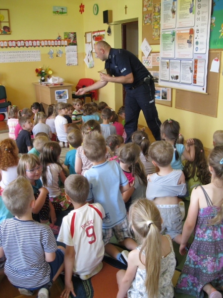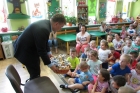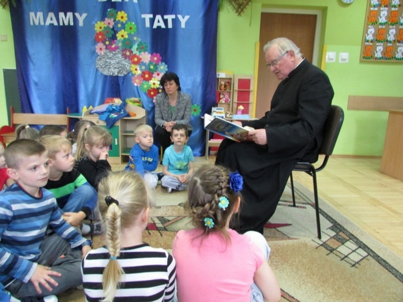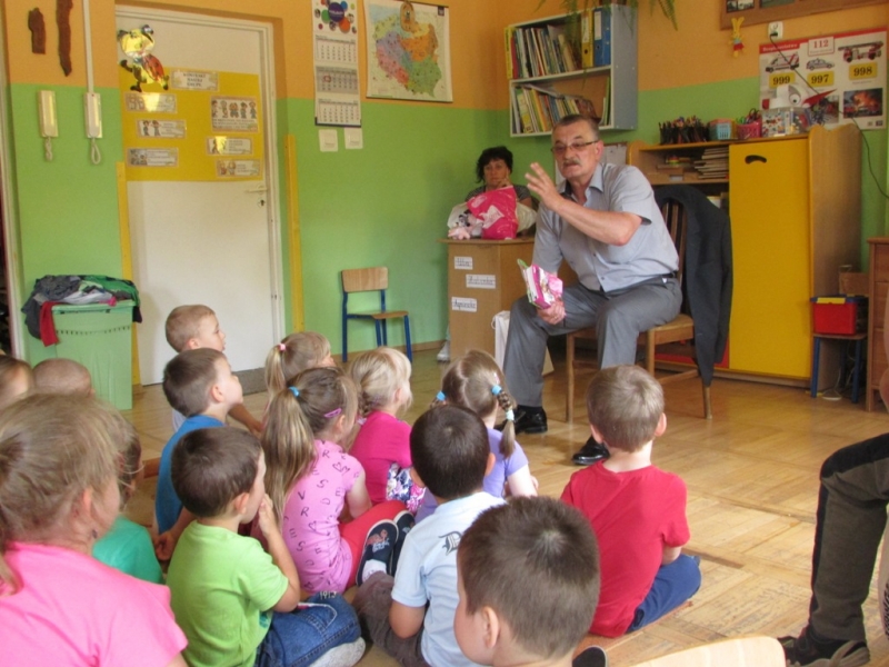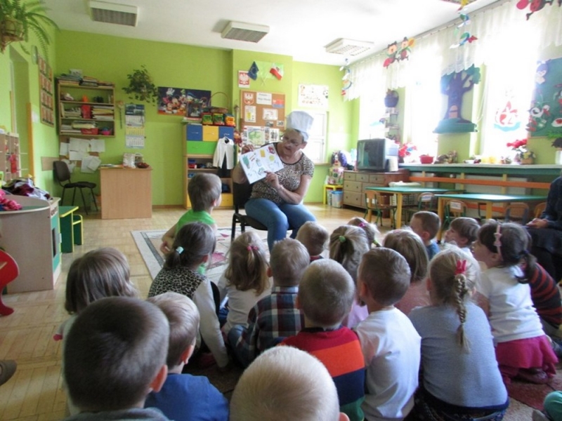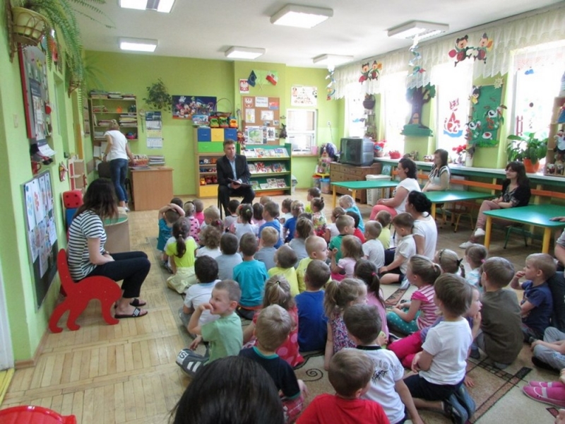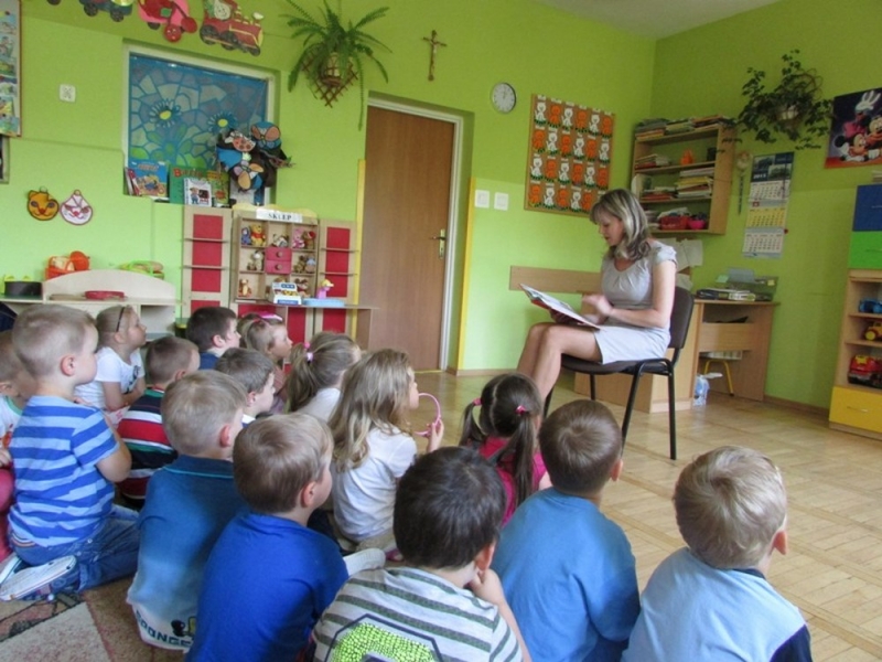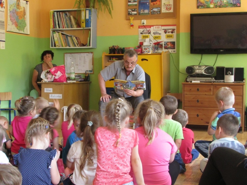 Ważną role w wychowaniu i rozwoju człowieka i to już od najmłodszych lat, odgrywa kontakt z książką, rozwijając wrażliwość i wpływając na rozwój intelektualny młodego słuchacza. Rozumiejąc to - nasze przedszkole, jak co roku, przystąpiło do ogólnopolskiej społecznej kampanii „Cała Polska czyta dzieciom".W ramach "spotkań z książką" nauczycielki we wszystkich grupach codziennie, czytają dzieciom bajki. Do akcji włączają się również chętni rodzice, których zapraszają do przedszkola panie ze wszystkich grup, a także same dzieciaki. W tym roku odwiedzili nas także wyjątkowi goście, czyli osoby powszechnie znane w środowisku lokalnym. Naszymi gośćmi byli ksiądz proboszcz W. Dobrzański, Burmistrz Miasta i Gminy Połaniec J. Tarnowski, Pani Skarbnik M. Żugaj wraz z synkiem, Przewodniczący Rady Miejskiej S. Lolo, Prezes MPG w Połańcu Jacek Nowak, pani dyrektor Centrum Kultury i Sztuki w Połańcu J. Juszczyńska, Strażacy z Państwowej Straży Pożarnej w Staszowie, lekarz pani J. Dragon, policjant P. Zysk, pani intendent przedszkola K. Nepelska oraz pani dyrektor naszego przedszkola A. Kaniszewska. Wszystkie spotkania dla dzieci miłym i radosnym doświadczeniem. Z wielkim skupieniem nasi przedszkolacy wysłuchali każdą czytaną bajkę. Po zapoznaniu z utworem , przeprowadzona była krótka rozmowa o przygodach bohaterów. Dzieci chętnie opisywali własnymi słowami zdarzenia, a następnie wykonują pracę plastyczną na wybrany przez siebie fragment z utworu literackiego. Książki dobieramy tak, by treścią odpowiadały możliwościom i zainteresowaniom dzieci. Na zakończenie dzieci wręczyły każdemu miłemu gościowi laurkę, w ramach podziękowań za mile spędzony czas. Dzieci z grupy "Kotki" uczestniczyły także w zajęciach zorganizowanych przez panie G. Kamińską i M. Myślak z świetlicy szkolnej "Pszczółki" w Szkole Podstawowej w Połańcu. Przedszkolaki chętnie uczestniczyły w zabawach i pracy plastycznej przygotowanej przez te panie. Podczas zajęć została oczywiście przeczytana bajeczka, która bardzo podobała się dzieciom. Włączając się w kampanię "Cała Polska czyta dzieciom" również wszystkie grupy przedszkolne uczestniczyły w zajęciach zorganizowanych przez Miejsko- Gminnej Bibliotece Publicznej w Połańcu.