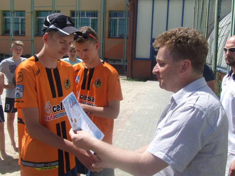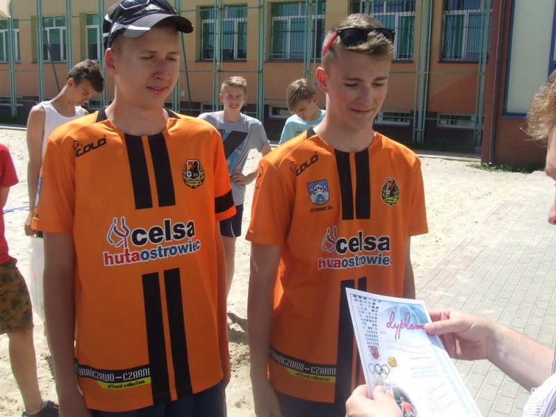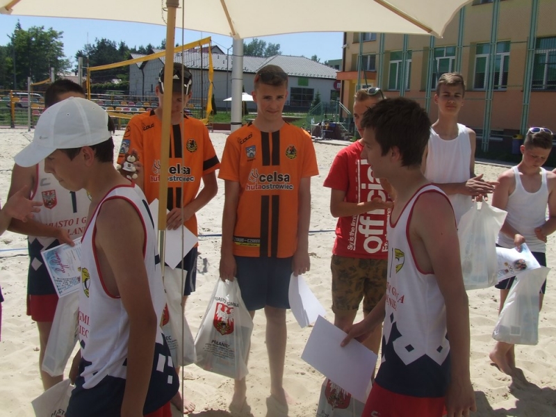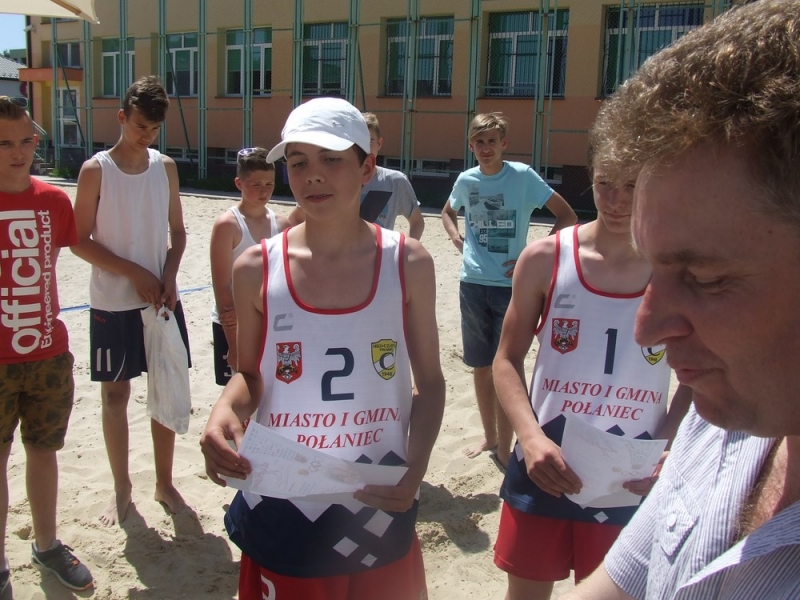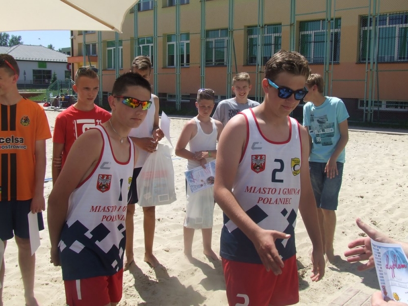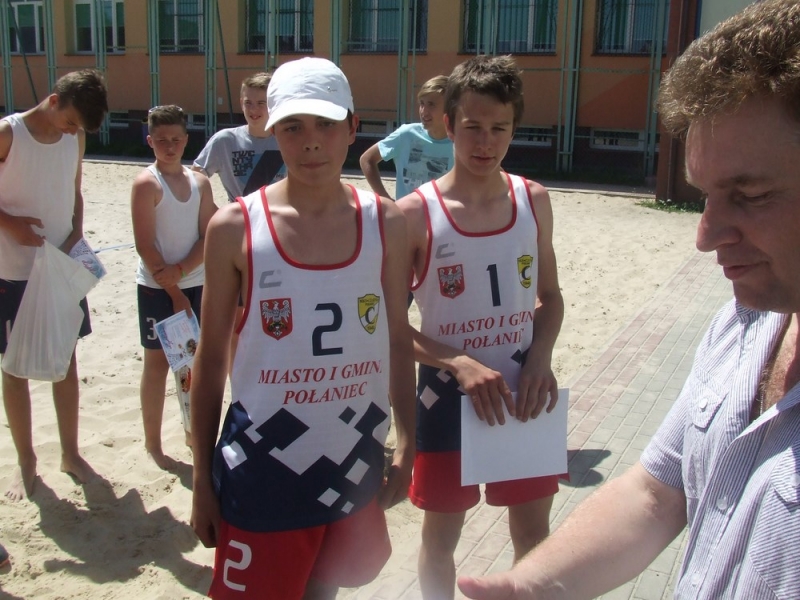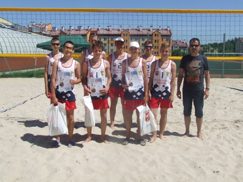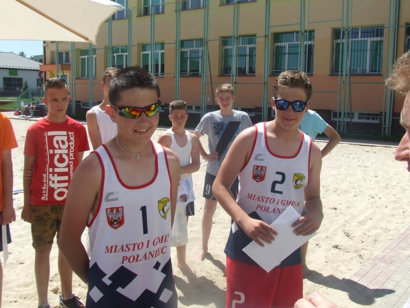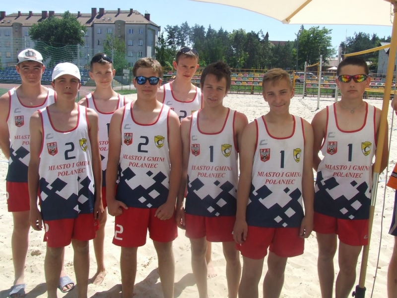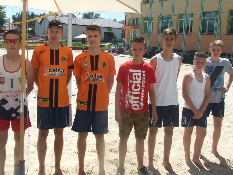 6 czerwca na boiskach przy Publicznym Gimnazjum nr 1 im. Królowej Jadwigi w Połańcu odbyły się Mistrzostwa Województwa Świętokrzyskiego Młodzików w siatkówce plażowej. Do zawodów zgłosiło się 9 par z 3 klubów siatkarskich : Gump Ostrowiec Świętokrzyski, ULKS Chobrzany oraz MKS Czarni Połaniec. Zawodnicy z Połańca okazali się bezkonkurencyjni zdobywając dwie czołowe lokaty. I miejsce zdobyła para Daniel Jungiewicz - Bartłomiej Sowiński, a drugie miejsce Adam Matuszek – Karol Bober. Obie pary awansowały do Półfinałów Mistrzostw Polski, które odbędą się na początku lipca w województwie podkarpackim. V miejsce w zawodach zajęła para Sebastian Szymczak – Kamil Wójcik , VII miejsce Kamil Kozłowski – Paweł Ambroży. Gratulujemy naszym parom i życzymy sukcesów na zawodach półfinałowych. Trenerem zawodników jest Krzysztof Kazberuk.