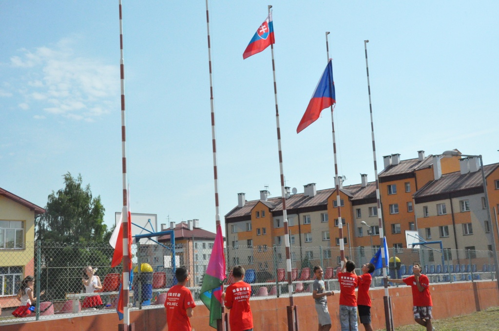 Miejscem uroczystego otwarcia Międzynarodowej Spartakiady Młodzieży Miast Partnerskich było boisko przy wielofunkcyjnym kompleksie boisk sportowych Publicznego Gimnazjum Nr 1 im. Królowej Jadwigi w Połańcu, gdzie w sobotę rano zgromadziły się wszystkie reprezentacje miast partnerskich, zaproszeni goście i kibice. Wszystkich zgromadzonych na płycie boiska oraz trybunach serdecznie powitał p.o. Dyrektora Ośrodka Sportu i Rekreacji w Połańcu – Maciej Witek, który poprosił o zaprezentowanie się wszystkich drużyn. Po uroczystym przemarszu po płycie boiska i prezentacji drużyn odsłuchano hymny narodowe Słowacji, Czech i Polski oraz wciągnięto flagi miast partnerskich na maszty – tym samym Międzynarodową Spartakiadę Młodzieży Miast Partnerskich oficjalnie uznano za otwartą!