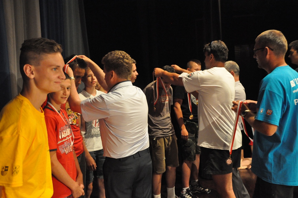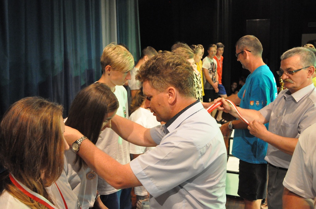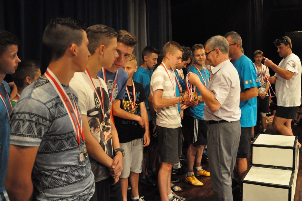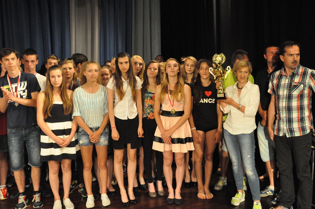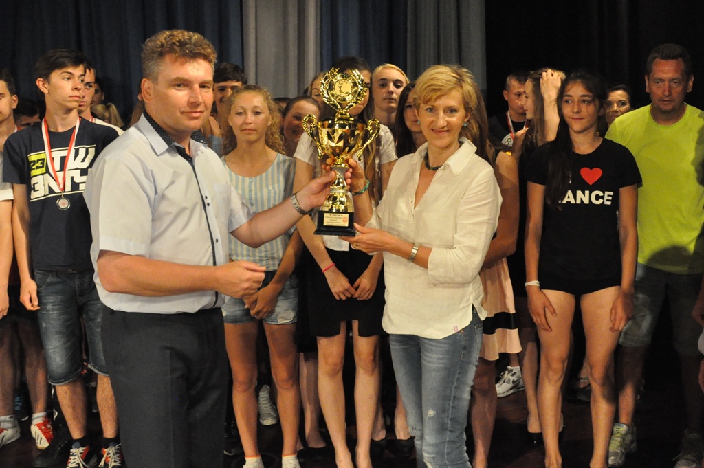 W niedzielę 14 czerwca, w nieco już innej scenerii, bo na sali widowiskowej Centrum Kultury i Sztuki w Połańcu, nastąpiło uroczyste zakończenie Międzynarodowej Spartakiady Młodzieży Miast Partnerskich. Uroczystość podsumowania sportowych zmagań poprowadził p.o. Dyrektora Ośrodka Sportu i Rekreacji w Połańcu – Maciej Witek. Na scenie pojawili się organizatorzy tegorocznej Spartakiady – Burmistrz Miasta i Gminy Połaniec – Jacek Tarnowski oraz Przewodniczący Rady Miejskiej – Stanisław Lolo, którzy serdecznie powitali wszystkie reprezentacje miast partnerskich i zaproszonych gości. W swych przemówieniach podziękowali wszystkim uczestnikom za przyjazd do Połańca i udział w zawodach, pogratulowali sportowej rywalizacji i osiągnięcia tak wspaniałych wyników. Podkreślili fakt, iż dzięki kontynuacji właśnie takich wydarzeń sportowych jakim jest Spartakiada, nie tylko promowany jest zdrowy i aktywny styl życia, ale rozwija się również integracja młodzieży i współpraca miast partnerskich, co jest bardzo ważne. Tym samym, wyrazili swoją nadzieję, że to sportowe przedsięwzięcie będzie kontynuowane jak najdłużej i, że za cztery lata ponownie spotkamy się w Połańcu, być może już na nowych obiektach sportowych i w równie dużym gronie.