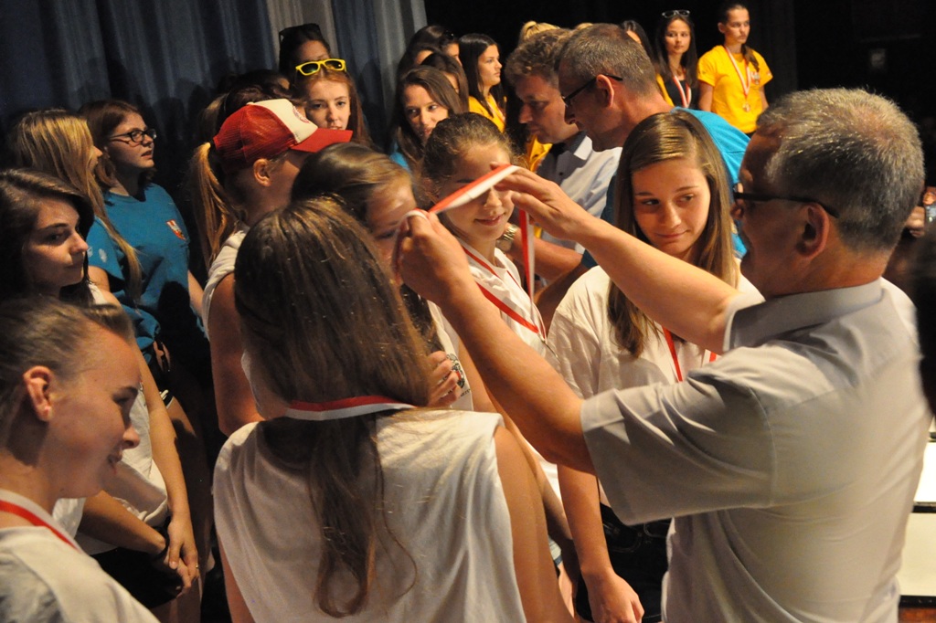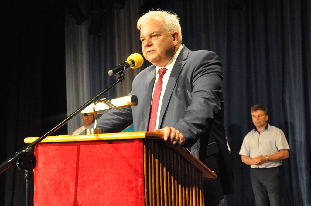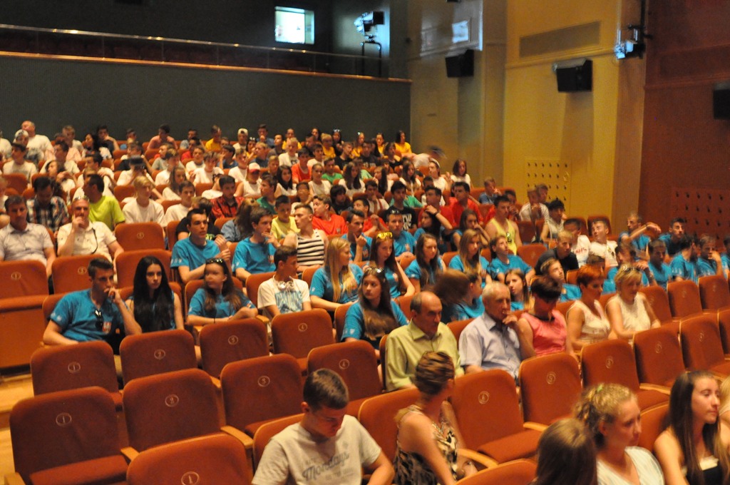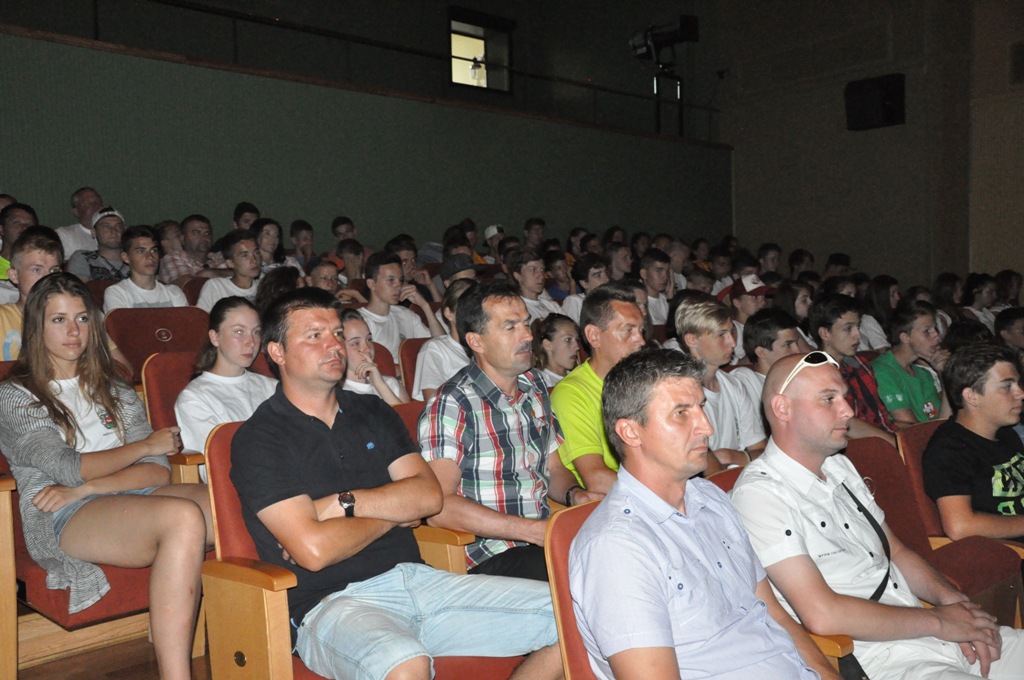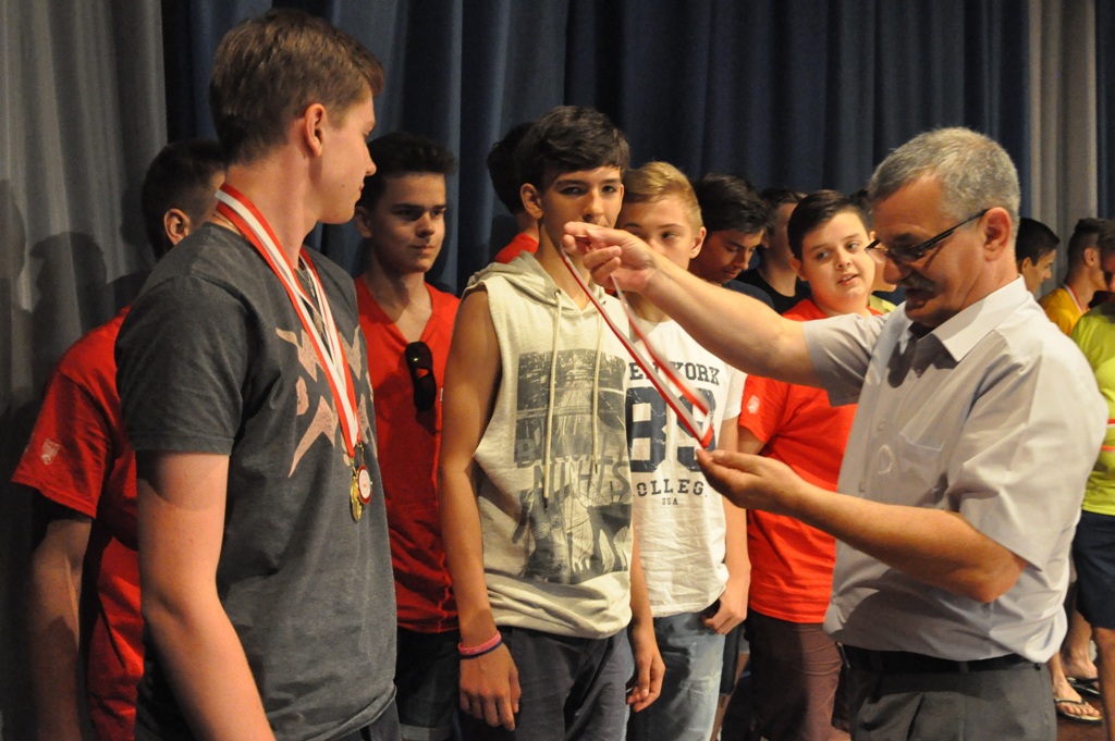 W niedzielę 14 czerwca, w nieco już innej scenerii, bo na sali widowiskowej Centrum Kultury i Sztuki w Połańcu, nastąpiło uroczyste zakończenie Międzynarodowej Spartakiady Młodzieży Miast Partnerskich. Uroczystość podsumowania sportowych zmagań poprowadził p.o. Dyrektora Ośrodka Sportu i Rekreacji w Połańcu – Maciej Witek. Na scenie pojawili się organizatorzy tegorocznej Spartakiady – Burmistrz Miasta i Gminy Połaniec – Jacek Tarnowski oraz Przewodniczący Rady Miejskiej – Stanisław Lolo, którzy serdecznie powitali wszystkie reprezentacje miast partnerskich i zaproszonych gości. W swych przemówieniach podziękowali wszystkim uczestnikom za przyjazd do Połańca i udział w zawodach, pogratulowali sportowej rywalizacji i osiągnięcia tak wspaniałych wyników. Podkreślili fakt, iż dzięki kontynuacji właśnie takich wydarzeń sportowych jakim jest Spartakiada, nie tylko promowany jest zdrowy i aktywny styl życia, ale rozwija się również integracja młodzieży i współpraca miast partnerskich, co jest bardzo ważne. Tym samym, wyrazili swoją nadzieję, że to sportowe przedsięwzięcie będzie kontynuowane jak najdłużej i, że za cztery lata ponownie spotkamy się w Połańcu, być może już na nowych obiektach sportowych i w równie dużym gronie.