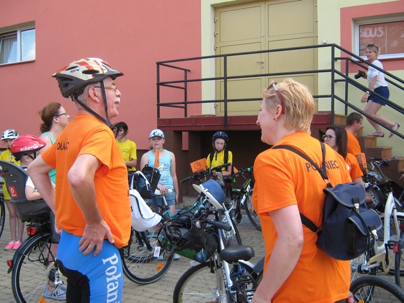 Przed startem uczestników rajdu zapoznano z ogólnymi zasadami bezpiecznego poruszania się na drodze, rozdano szprychówki, przypinki, chorągiewki i pomarańczowe koszulki z logiem akcji. Wiele osób miało przy sobie gadżety z poprzedniej edycji. Zrobiło się kolorowo, by wszyscy z daleka byli widoczni na drodze. Dodatkowo nad bezpieczeństwem przejazdu, zwłaszcza najmłodszych cyklistów, przez ulice Połańca czuwała, jak co roku policja.