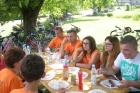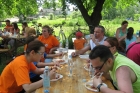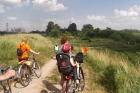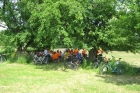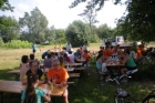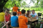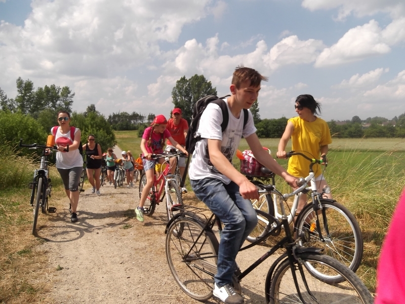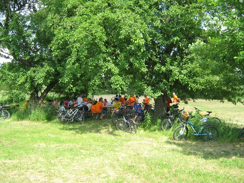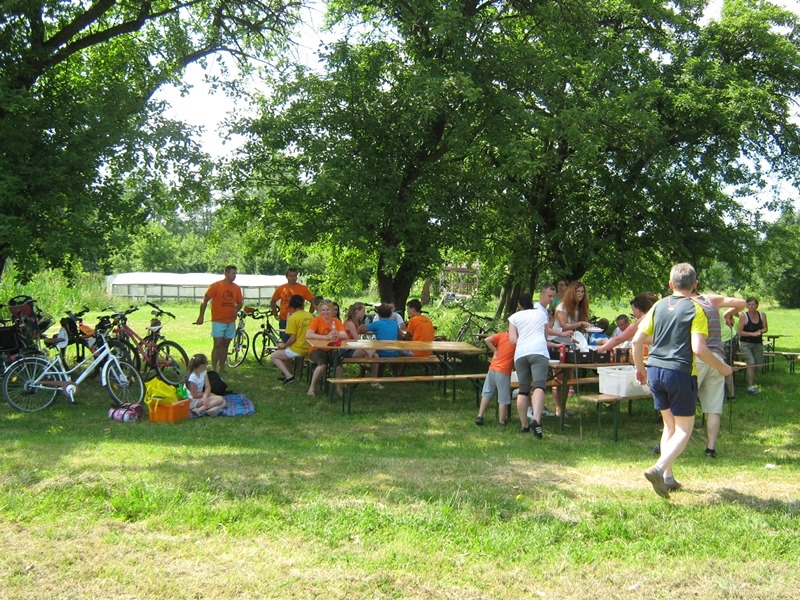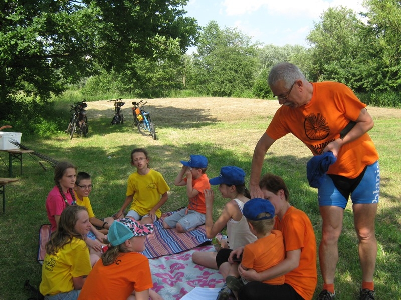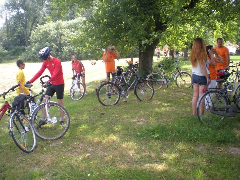 Po godzinie 16-tej uczestnicy trzeciej edycji Odjazdowego Bibliotekarza zaczęli powoli zbierać się do powrotu. Atmosfera rajdu była wesoła i nikt już nie odczuwał zmęczenia. Jak zwykle swoją wytrwałością i energią zadziwiali (i zawstydzali) nas, dorosłych, najmłodsi cykliści, którzy zdawałoby się nie odczuwali gorąca. Pogoda, wbrew przewidywaniom, nie była naszym wrogiem. Burzy nie odnotowano, upał łagodził wiatr, który nie był na tyle silny by przeszkadzać rowerzystom, ale delikatnie chłodził i sprawiał, że jazda była przyjemna.