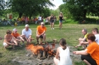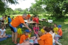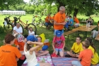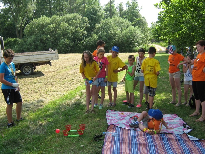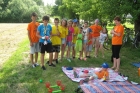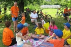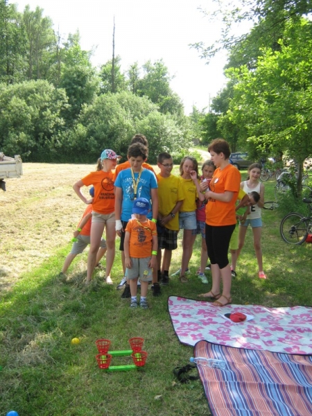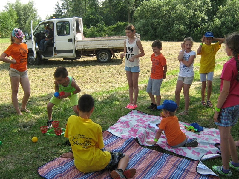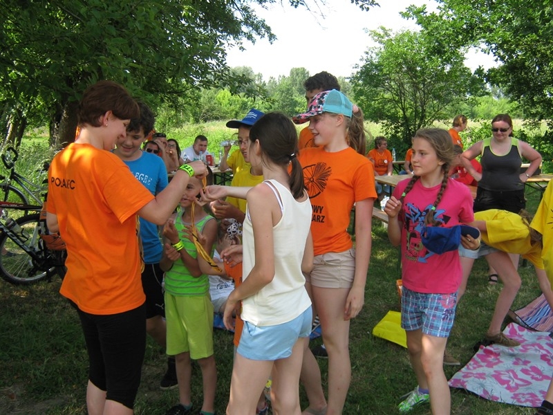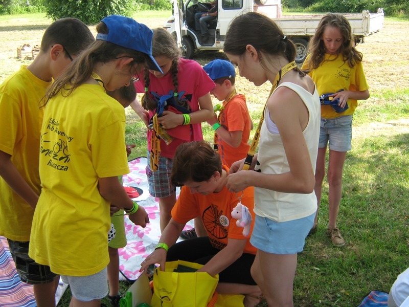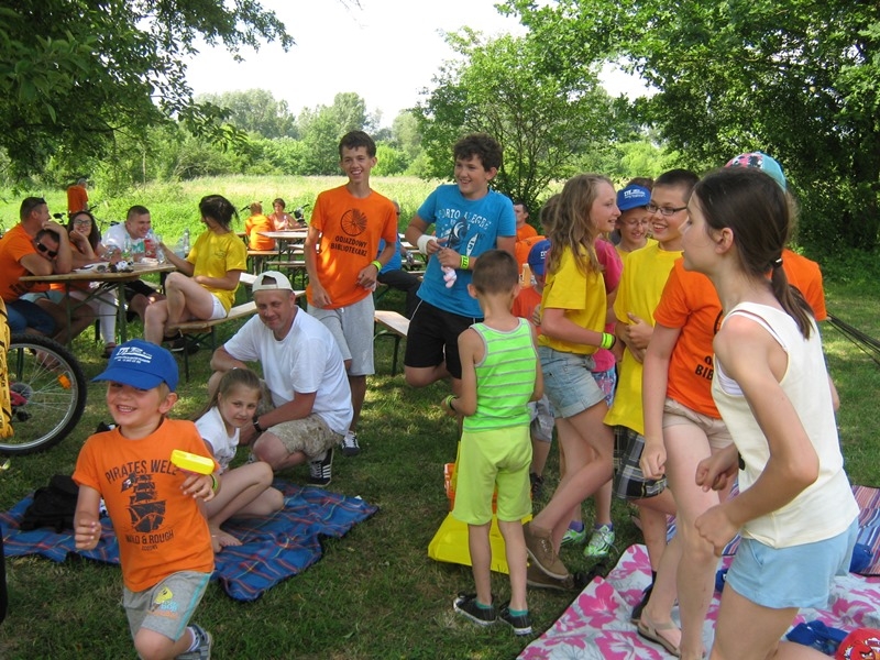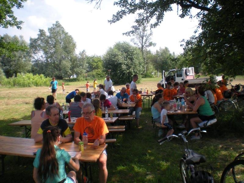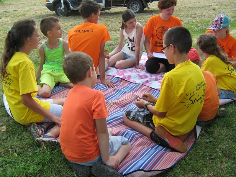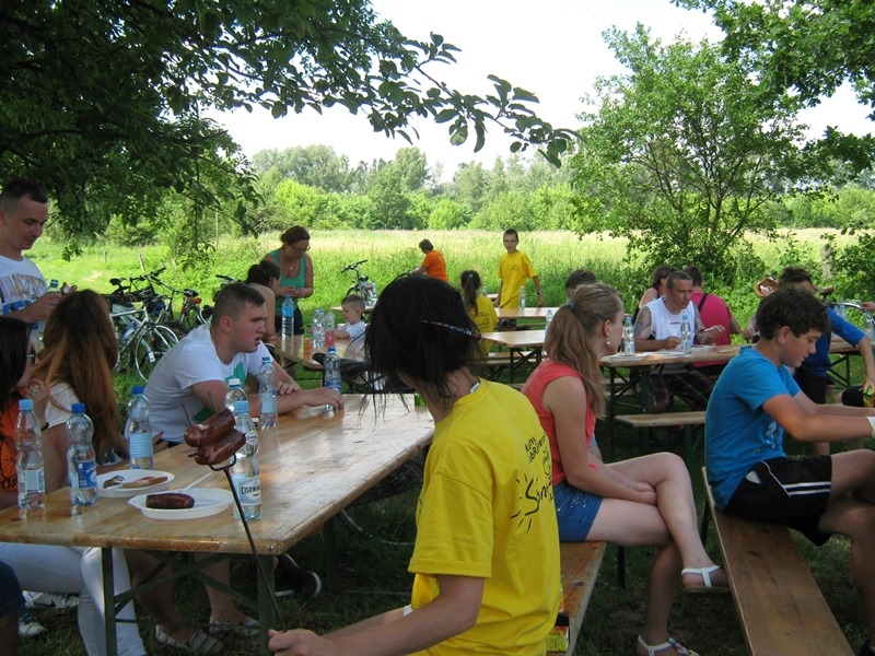 A na mecie rajdu, w Winnicy, na wszystkich czekało drewno do rozpalenia ogniska, kiełbaski i napoje. Dla dzieci przygotowano także soki owocowe. Kolarze mogli odpocząć w cieniu drzew, poleniuchować na kocykach i zjeść upieczoną na ognisku kiełbaskę. Maluchom w pieczeniu kiełbasek pomagali oczywiście dorośli. Był czas na rozmowę i wymienienie się wrażeniami z wyprawy. Najmłodsi chętnie brali udział w zabawach umysłowych i ruchowych przygotowanych przez bibliotekarzy, a w nagrodę otrzymali książki, foldery o Połańcu i gadżety: czapki z daszkiem, odblaski, notatniki, maskotki, breloczki, smycze do telefonów.