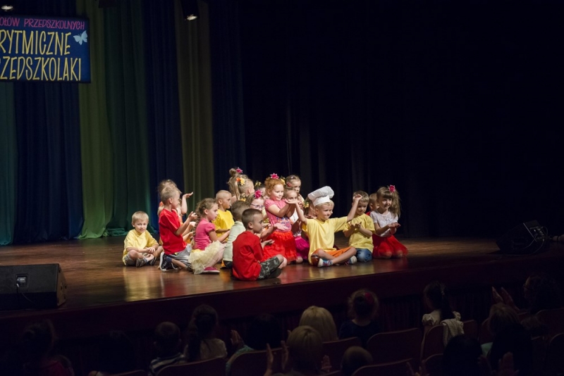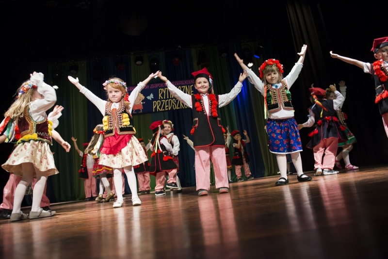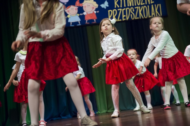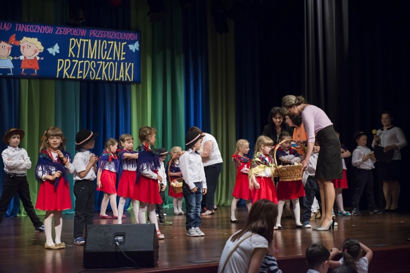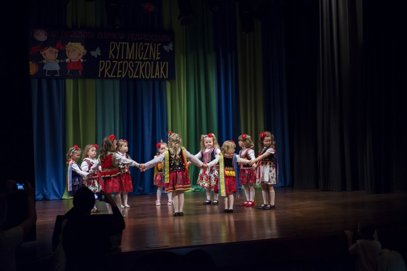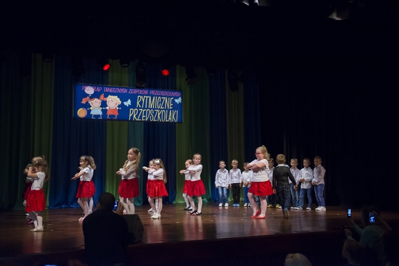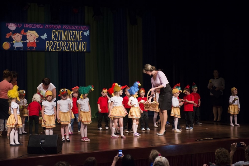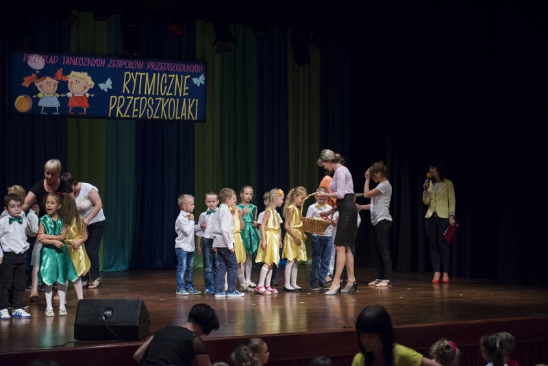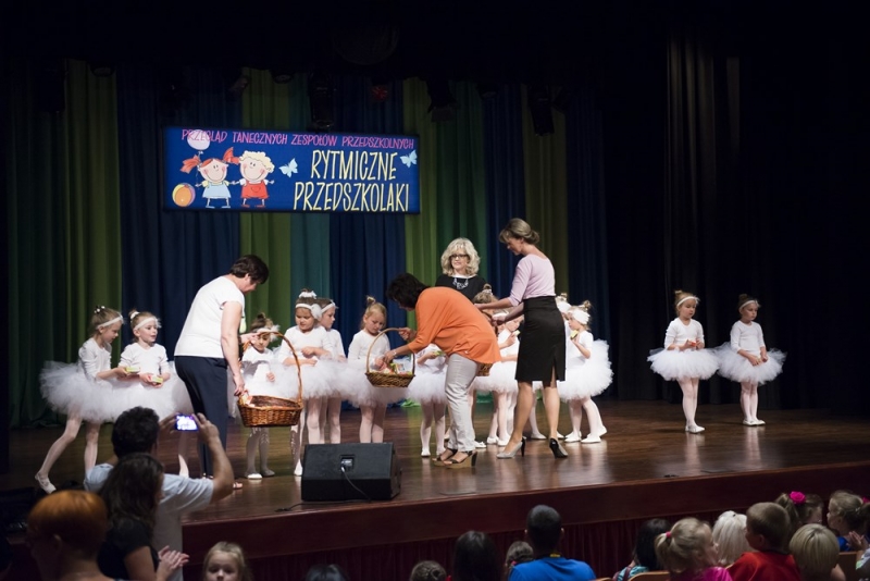 W tegorocznym III Przeglądzie Tanecznych Zespołów Przedszkolnych „Rytmiczne Przedszkolaki” wzięło udział 12 grup przedszkolnych. W przeglądzie brały udział dzieci z grupy przedszkolnej „Motylki” ze Świetlicy dla małych dzieci w Ratajach Słupskich które zaprezentowały widowisko ruchowo – taneczne do piosenki „Poszło dziewczę po ziele” przygotowane przez panią Agatę Wilk; dzieci z Przedszkola Gminnego im. Św. Jana Pawła II w Oleśnicy grupa „Tańczące motyle” przeniosła nas w niezwykły świat muzyki Piotra Czajkowskiego prezentując się w widowisku ruchowo-tanecznym „Taniec Łabędzi” przygotowanym pod kierunkiem pani Teresy Wójcik; Przedszkole Publiczne w Ruszczy grupa „Muchomorki” w tańcu regionalnym „Polka”, opiekun Anna Kwiatkowska i Małgorzata Urbańska. Przedszkole Publiczne w Połańcu było reprezentowane przez grupy: „Motylki” przedstawiły taniec „Krakowiak” przygotowany pod kierunkiem pań: Joanny Pietras, Anny Sakławskiej i Bożeny Laski, „Kotki” zaprezentowały widowisko ruchowo- taneczne „Walc Amelii” przygotowane przez Anitę Wróbel, Karolinę Rybicką i Joannę Pietras, „Smerfy” wystąpiły w widowisku ruchowo – tanecznym „Skoczne piłeczki – Puccio Italiano” przygotowane pod kierunkiem pań: Edyty Dziedzic – Godlewskiej, Janiny Sobierajskiej i Katarzyny Nowińskiej - Karaś, grupa „Pszczółki” pod czujnym okiem pani Katarzyny Chrząstowskiej – Chabior przygotowała widowisko – ruchowo taneczne „Taniec ziemi”, dzieci z grupy „Słoneczka” przedstawiły taniec nowoczesny „Grees” przygotowany pod kierunkiem pań: Joanny Pietras, Joanny Kicińskiej i Marii Hodackiej. Grupa „Koniczynki” z Przedszkola Publicznego w Połańcu filia nr 2 wykonała „Taniec góralski” przygotowany przez panie: Joannę Pietras, Jolantę Marczewską i Mirosławę Gad, z Przedszkola Publicznego w Połańcu filia nr 1 zaprezentowały się dzieci z grupy „Leśne Ludki” w tańcu nowoczesnym „Mamma Mia” małych artystów przygotowały panie: Joanna Pietras, Barbara Stachura oraz Dorota Rzepka, „Kotki” przedstawiły taniec pt: „Let’s Kiss” przygotowany przez Joannę Pietras, Ewę Ratusznik, Ewelinę Sałatę, „Smerfy” pokazały się w tańcu „Kurnik” dostarczając wizualnych wrażeń pod kierunkiem Joanny Pietras, Grażyny Poniewierskiej i Ewy Witkowskiej.