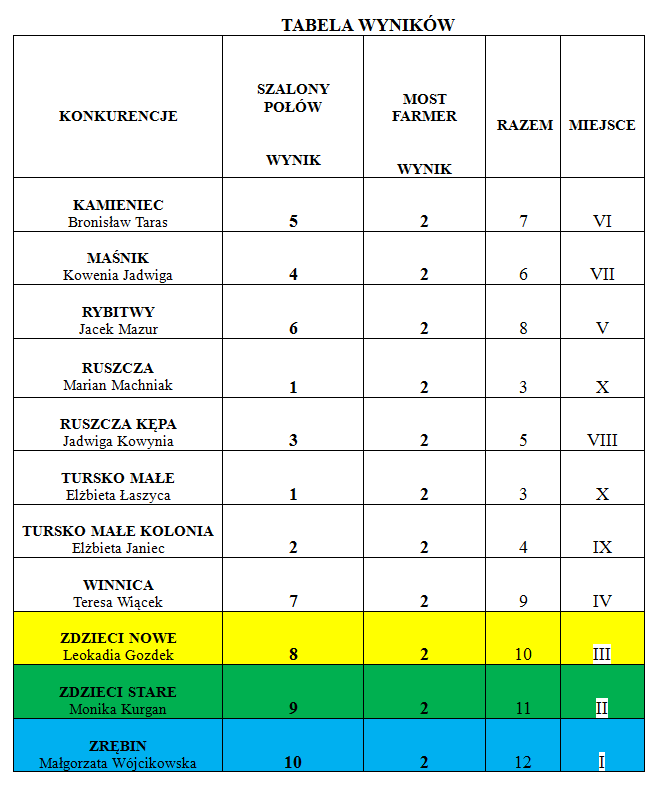 Gwoździem programu niedzielnej imprezy były zawody sportowo – sprawnościowe rozegrane pomiędzy sołtysami. Pomimo trudności i wysiłku sołtysi byli zadowoleni i uśmiechnięci. Do walki o zaszczytne miejsce na podium zagrzewali sołtysów wierni kibice.