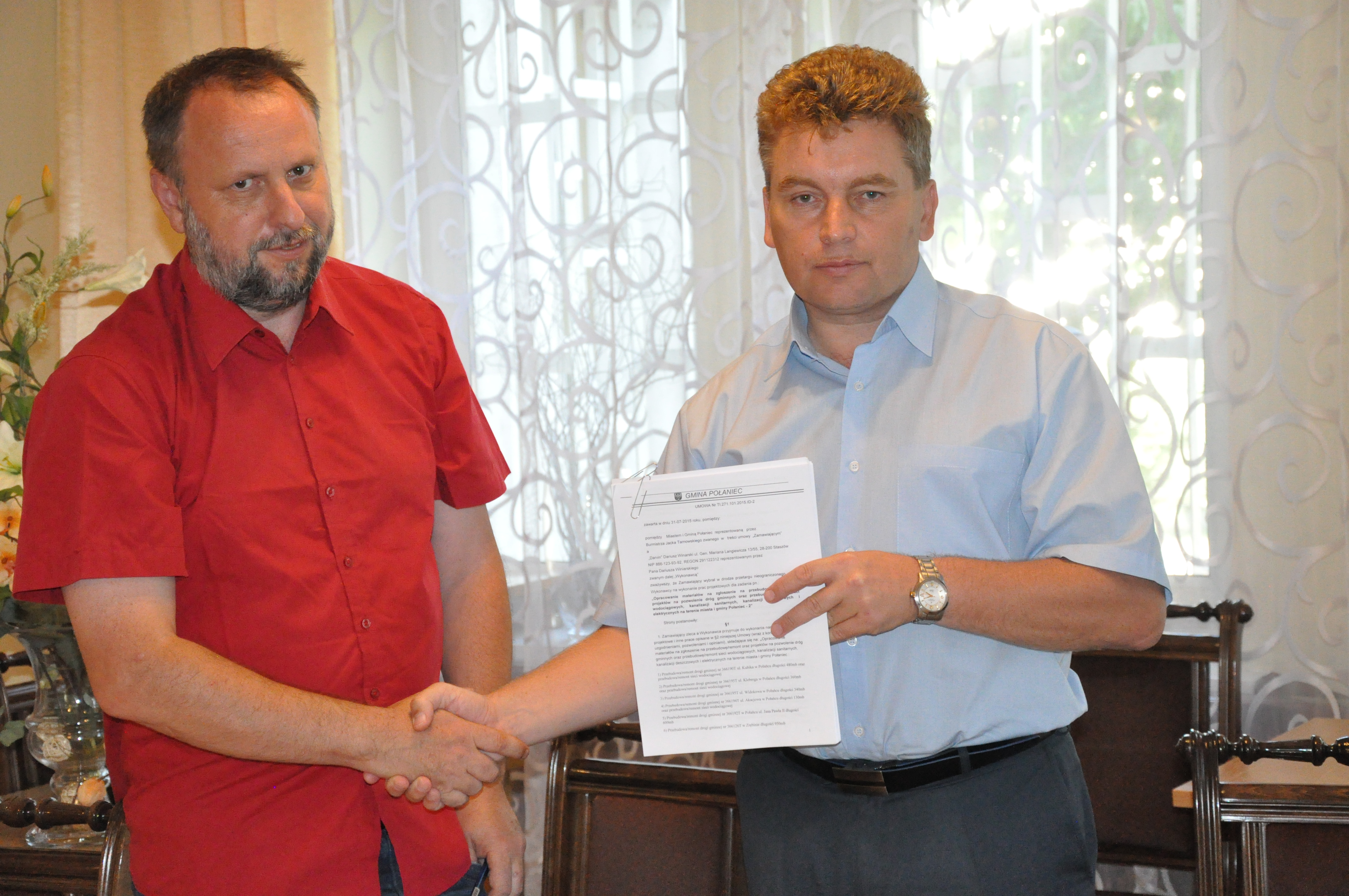 Umowę na przedmiotowe zadanie w imieniu Miasta i Gminy Połaniec podpisuje burmistrz Połańca - Jacek Tarnowski z wykonawcą - Dariuszem Winiarskim reprezentującym firmę DARVIN