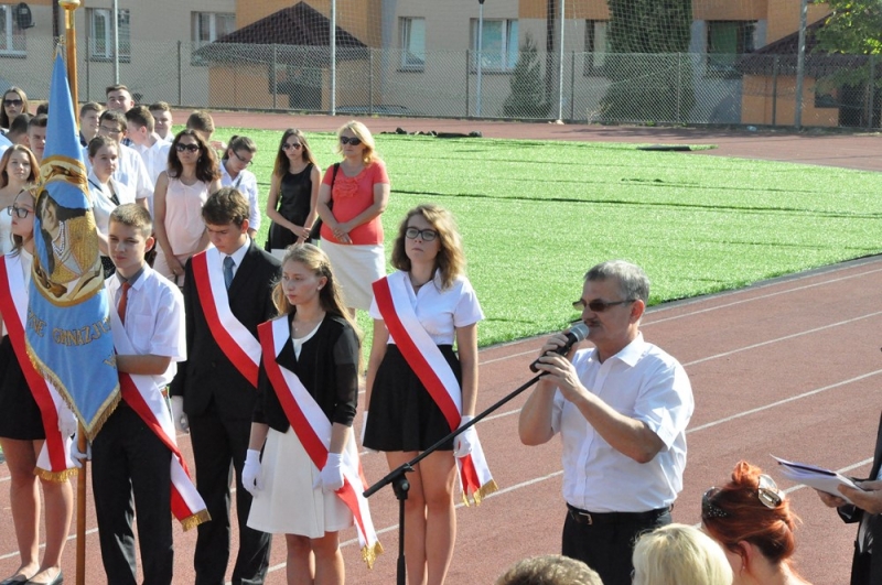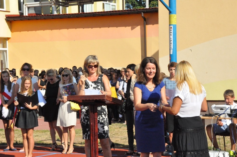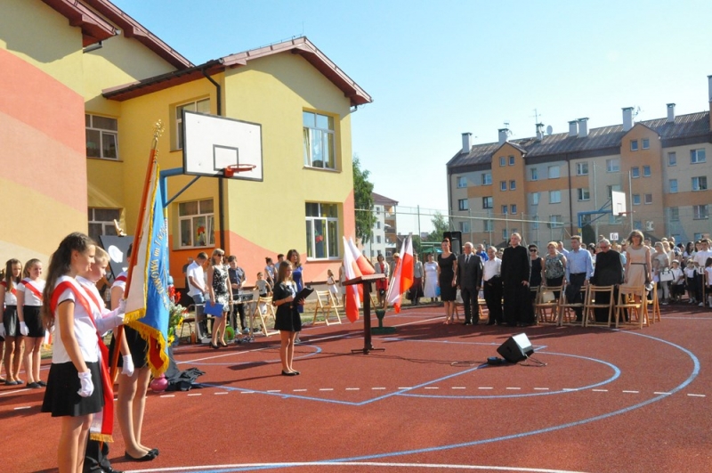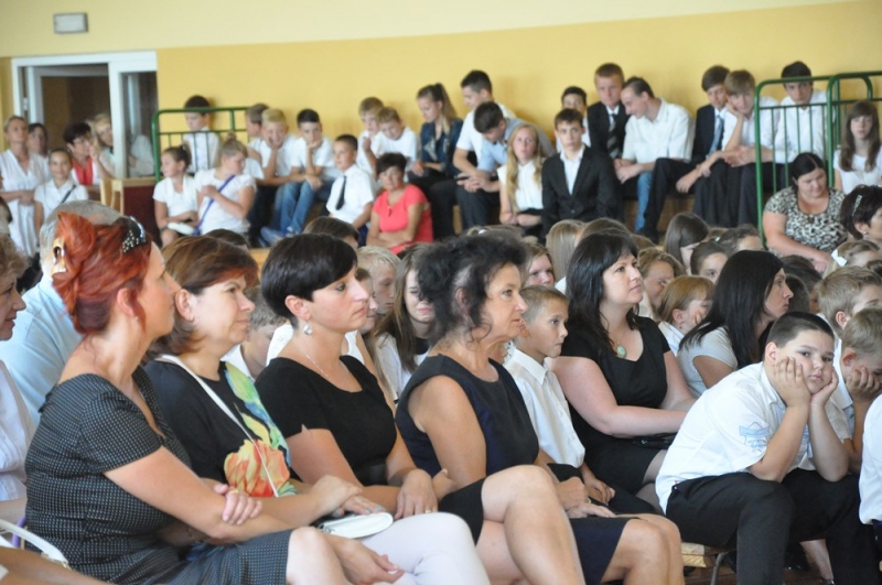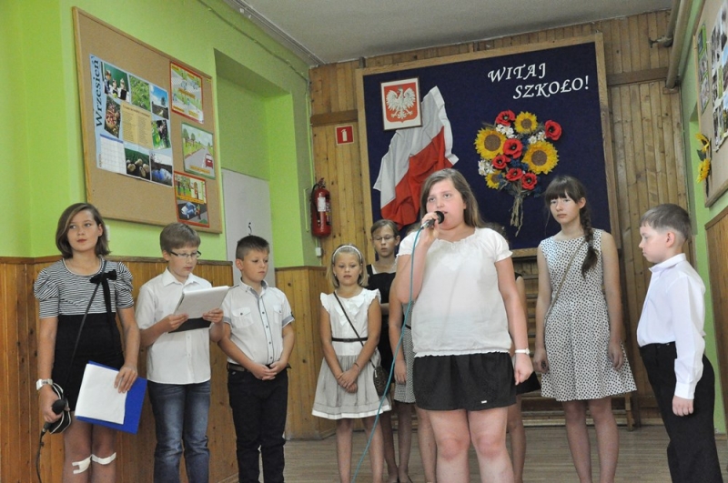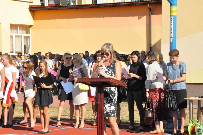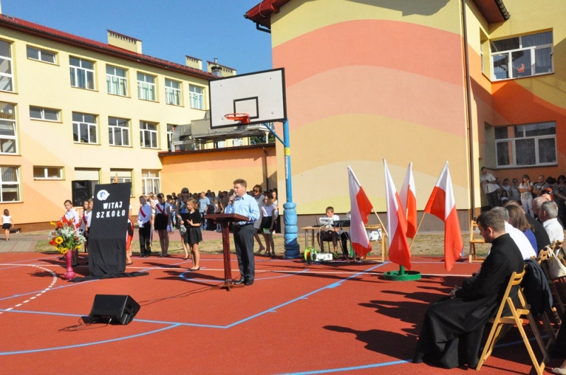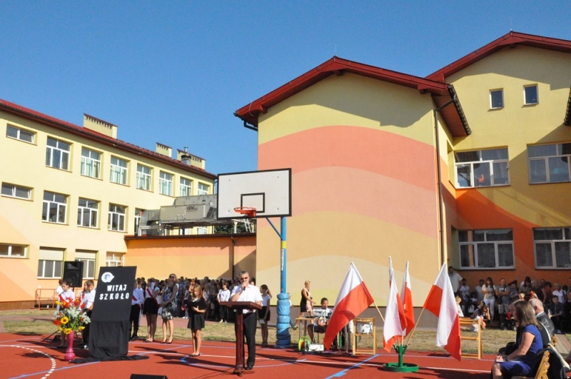 Uroczystości w poszczególnych placówkach rozpoczynały się wprowadzeniem Sztandaru Szkoły, Hymnem Państwowym i minutą ciszy poświęconą pamięci Rocznicy Wybuchu II Wojny Światowej, a w Publicznym Gimnazjum uczczono również minutą ciszy pamięć zmarłej koleżanki w okresie wakacyjnym. Dyrektorzy poszczególnych placówek oświatowych, niezwykle ciepło witali całą społeczność szkolną i przybyłych gości w osobach: burmistrza Miasta i Gminy Połaniec – Jacka Tarnowskiego, przewodniczącego Rady Miejskiej – Stanisława Lolo, wiceprzewodniczących - Andrzeja Wawrzyńca, Zdzisława Kwiatkowskiego, pozostałych radnych Rady Miejskiej, skarbnik gminy - Małgorzatę Żugaj, dyrektor Zespołu Ekonomiczno - Administracyjnego Oświaty i Wychowania w Połańcu - Jadwigę Kralę, a także prezesów, dyrektorów poszczególnych jednostek z terenu gminy Połaniec, Radę Rodziców, księży, rodziców pociech. Gronu Pedagogicznemu, Wszystkim Uczniom i Pracownikom szkoły życzyli wytrwałości i wielu osiągnięć w nowym roku szkolnym. Dyrektorzy szkół przypomnieli, iż w okresie wakacyjnym w poszczególnych budynkach prowadzono prace remontowe, dzięki czemu w szkołach jest nowocześnie i bezpiecznie, składając podziękowania za starania i zaangażowanie okazywane przez lokalny samorząd przy doskonaleniu funkcjonowania placówek oświatowych i wychowawczych działających na naszym terenie. Dyrektorzy szkół życzyli wytrwałości i mądrości uczniom, a tym, którzy po raz pierwszy przekroczyli progi szkoły - ambitnego i odpowiedzialnego wypełniania uczniowskich obowiązków. Następnie odbyły się występy artystyczne w wykonaniu uczniów. O ważnych wydarzeniach z historii naszego kraju - wybuchu drugiej wojny światowej przypominali w swoich przemówieniach goście: burmistrz Połańca - Jacek Tarnowski, przewodniczący Rady Miejskiej - Stanisław Lolo, wiceprzewodniczący Rady Miejskiej - Andrzej Wawrzyniec, wiceprzewodniczący Rady Miejskiej - Zdzisław Kwiatkowski, apelując o pamięć i szacunek do historii. Podkreślali także nowoczesność i bezpieczeństwo obiektów. Popłynęły życzenia od przedstawicieli samorządowych w kierunku nauczycieli i uczniów - aby rok szkolny był dla wszystkich rokiem sukcesów, czasem zadowolenia i poczucia dumy ze zrealizowanych zadań, aby w podejmowanych działaniach towarzyszył i sprzyjał zapał w osiąganiu wspaniałych wyników. W Zespole Placówek Oświatowych w Ruszczy dyrektor Elżbieta Juszczyk otrzymała pisemne powierzenie stanowiska dyrektora na ponowną kadencję oraz gratulacje od zaproszonych gości, nauczycieli i dzieci.