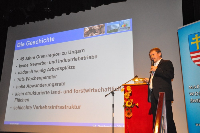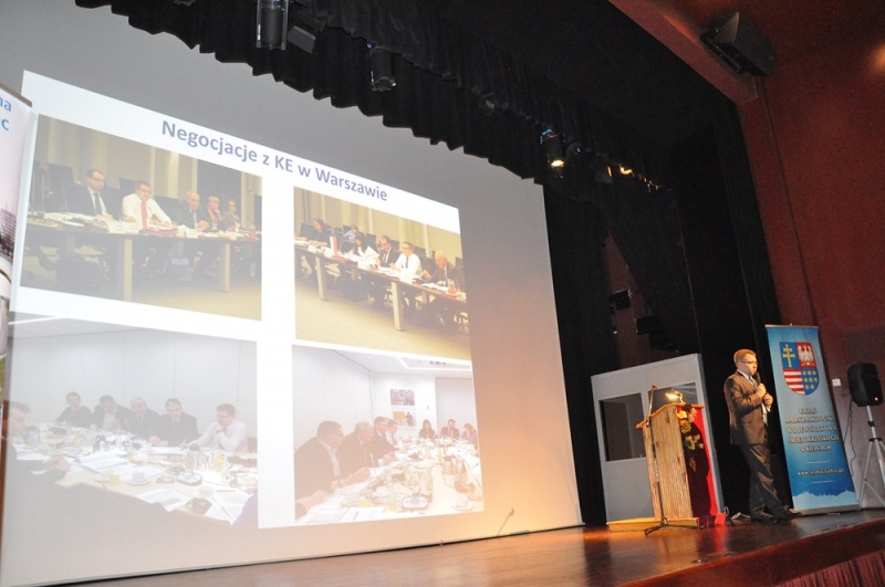 Wszystkich zgromadzonych na sali widowiskowej CKiSz w Połańcu powitała skarbnik Gminy – Małgorzata Żugaj przedstawiając dotychczasowe efekty inwestycyjne w obszarze energii odnawialnej na terenie Połańca. W tym m.in. hybrydowy system zasilania oświetlenia w technologii LED, kolektory słoneczne, prace termomodernizacyjne, instalacje wykorzystujące odnawialne źródła energii planowane do realizacji, planowany montaż kolektorów służących do przygotowania ciepłej wody użytkowej oraz podgrzewania wody basenowej w ramach modernizacji obiektu. W spotkaniu brali udział przedstawiciele Urzędu Marszałkowskiego w Kielcach, Centrum Obsługi Inwestora i Przedsiębiorczości, przedstawiciele władzy samorządowej powiatowej, lokalnej, zainteresowane tematem osoby. W pierwszej części spotkania Grzegorz Orawiec, dyrektor Departamentu Polityki Regionalnej Urzędu Marszałkowskiego Województwa Świętokrzyskiego przedstawił możliwości inwestycji w sektor energii odnawialnej w ramach Osi nr 3 RPOWŚ 2014-2020 oraz mechanizmy realizacji projektów z zakresu efektywności energetycznej. Uczestnicy wysłuchali wystąpienia ekspertów zagranicznych. Jako pierwszy wystąpił Bernharda Deutscha – burmistrz austriackiej gminy Güssing, który przedstawił gminę Guessing, jako przykład gminy samowystarczalnej energetycznie dzięki zastosowaniu nowoczesnych systemów z zakresu OZE i EWE, głównie opartych na biomasie, biogazie i energii słonecznej. Następnie wysłuchaliśmy Mikaela Backmana, dyrektora Szwedzko-Polskiej Platformy Zrównoważonej Energetyki, który przybliżył zasady funkcjonowania Szwedzko-Polskiej Platformy Zrównoważonej Energetyki i przedstawił główne realizowane projekty w tym m.in. z miastem Zabrze w obszarze czystości powietrza oraz wykorzystania źródeł geotermalnych w systemie grzewczym szwedzkiego miasta Lund. W swej wypowiedzi zaznaczył, że jest również otwarty na współpracę ze świętokrzyskim. W ostatnim wystąpieniu Prezes Świętokrzyskiego Centrum Innowacji i Transferu Technologii Sp. z o. o., Karol Kaczmarski omówił dotychczasowe działania Świętokrzysko - Podkarpackiego Klastra Energetycznego oraz możliwości podejmowania dalszych inicjatyw w obszarze energii odnawialnej. Po spotkaniu pełnym wymiany doświadczeń, pytań do ekspertów odbyła się wspólna wizyta po Połańcu, podczas której goście zwiedzali miasto i najpiękniejsze jego zakątki. Uczestnicy spotkania mogli przejechać nowym mostem na Wiśle do woj. podkarpackiego, aby po drodze przyjrzeć się również bliżej Zielonemu Blokowi Energetycznemu w Elektrowni, następnie poznać ofertę inwestycyjną Połańca poprzez wizytację terenów inwestycyjnych - strefa B i C, a także zobaczyć zachwycające widoki ze skarpy wiślanej. Wszelkie rozwiązania inwestycyjne na naszym terenie przedstawiała kierownik ref. ds. pozyskiwania zewn. środków i promocji w UMiG - Aneta Matusiewicz, kier. ref. inwestycyjnego – Danuta Bobrowska i Radni Rady Miejskiej.
