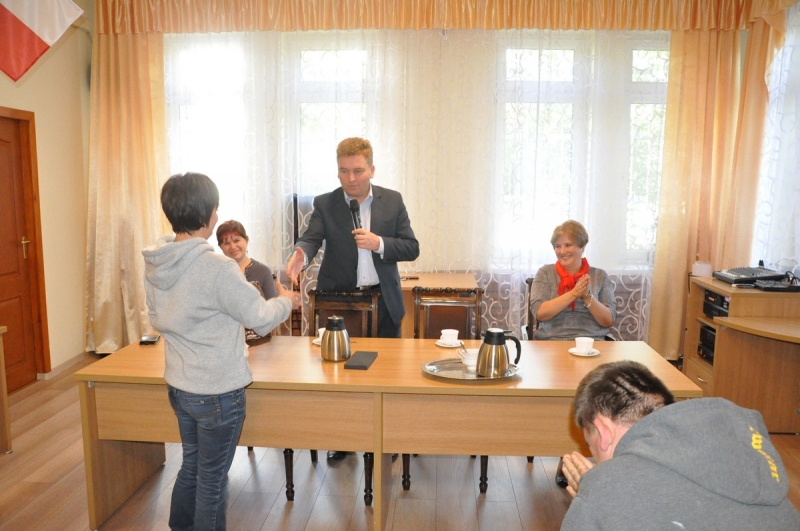 Nie obyło się bez niespodzianek. Uczestnicy placówki otrzymali kawę do wcześniej przekazanego upominku z okazji „Powitania Lata” i Jubileuszu WTZ w postaci ekspresu. Po spotkaniu tradycyjnie zgłoszone uwagi zostały zapisane i zakres zostanie zrealizowany, tak aby pomóc każdemu kto taką potrzebę zasygnalizował. Na koniec burmistrz zapowiedział, że spotkania te będą nadal kontynuowane zarówno w urzędzie jak i w terenie z prośbą o przygotowywanie potrzeb i zgłaszanie spraw w celu wspólnego rozwiązywania problemów. Kolejna wizyta podopiecznych WTZ w magistracie już w listopadzie.