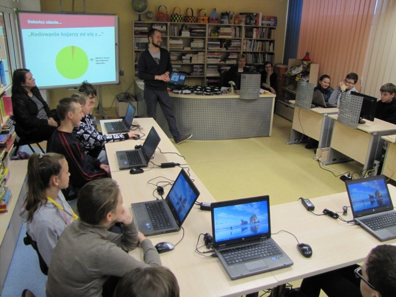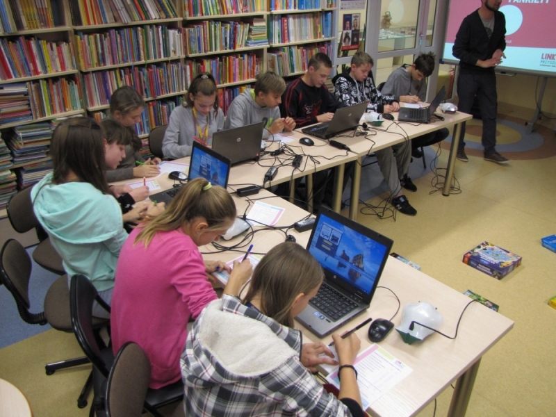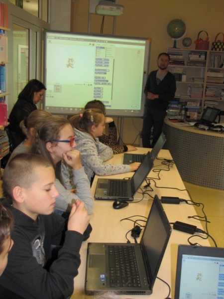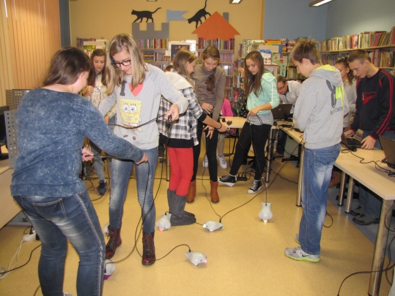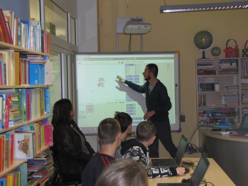 Zajęcia zorganizowano w ramach projektu „Link do przyszłości. Zaprogramuj swoją karierę”, do którego udziału w województwie świętokrzyskim zakwalifikowały się tylko dwie instytucje, w tym nasza Biblioteka. Projekt realizowany przez Fundację Rozwoju Społeczeństwa Informacyjnego (FRSI) ma na celu zachęcenie młodych ludzi (w wieku od 10 do 15 lat) do odnalezienia w sobie pasji programowania i pomoc przy wyborze ścieżki kariery związanej z nowymi technologiami. W tworzącym się na naszych oczach internecie rzeczy kodowanie będzie jedną z najbardziej poszukiwanych i docenianych umiejętności. Już dziś urządzenia gospodarstwa domowego, samochody, telefony czy zegarki naszpikowane są elektroniką, która do działania wymaga, aby programista „tchnął w nie życie”. Ponadto programowanie pomaga w codziennym życiu, pozwalając niejednokrotnie patrzeć na świat z szerszej perspektywy, a problemy rozwiązywać szybciej i sprawniej.