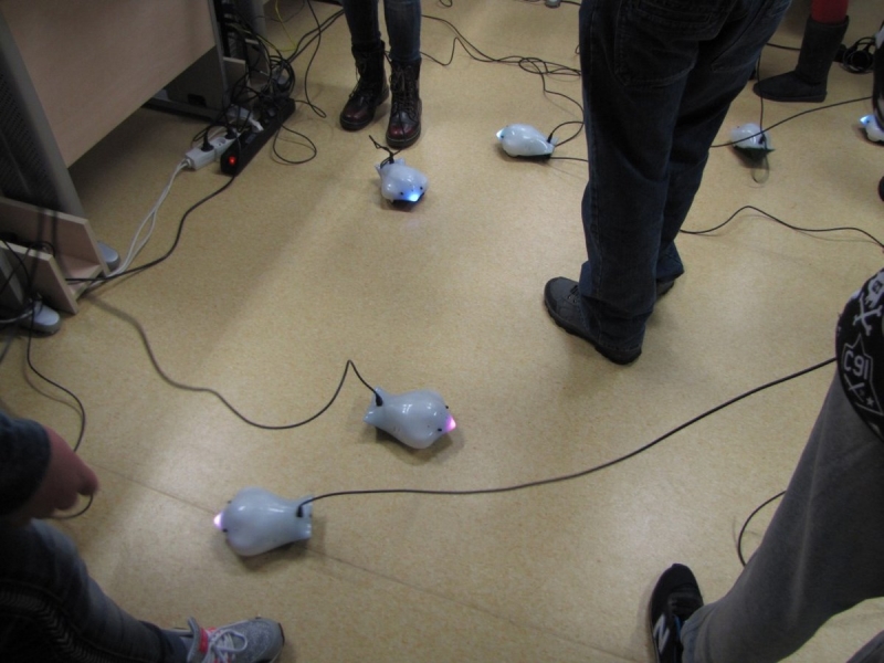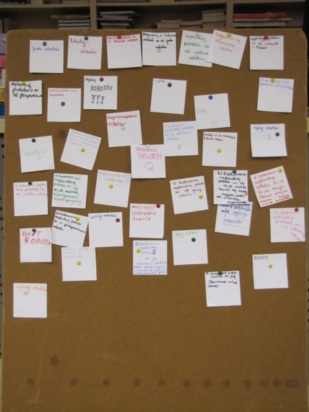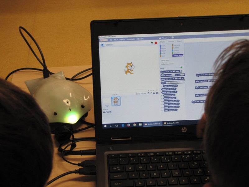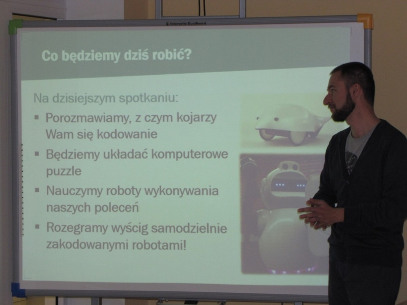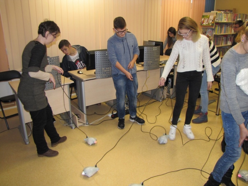 Podczas zajęć młodzież dowiedziała się czym jest kodowanie i jaka z nim wiąże się przyszłość. Poznała zasady programowania w środowisku Scratch, a następnie przy wsparciu prowadzących zajęcia tworzyła aplikację do sterowania robotami. Podsumowaniem zdobytej wiedzy i umiejętności były wyścigi w labiryncie własnoręcznie zaprogramowanymi robotami Finch. W trakcie tego ćwiczenia uczniowie pracowali w parach. Jedna osoba sterowała robotem by jak najszybciej i bez kolizji dotarł do mety, a druga prowadziła go ”na smyczy”, czyli trzymała za kabel łączący z komputerem. Ta część warsztatów spodobała się młodzieży najbardziej. Po wyłonieniu zwycięzcy wyścigu i nagrodzeniu gromkimi brawami nadszedł czas na podsumowanie spotkania. Młodzi „programiści” na karteczkach zapisali odpowiedzi na pytanie co najbardziej podobało im się w kodowaniu i przypięli je na tablicy, a następnie wypełnili ankietę dzieląc się z organizatorami zajęć swoimi spostrzeżeniami. Na koniec wszystkim serdecznie podziękowano za udział i zaproszono do wspólnego pamiątkowego zdjęcia z robotami. Spotkanie okazało się niezwykłym wydarzeniem, które wielu uczestnikom zapadnie głęboko w pamięć.