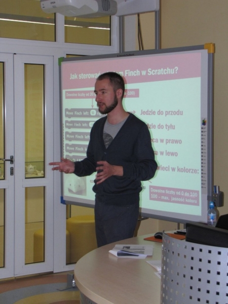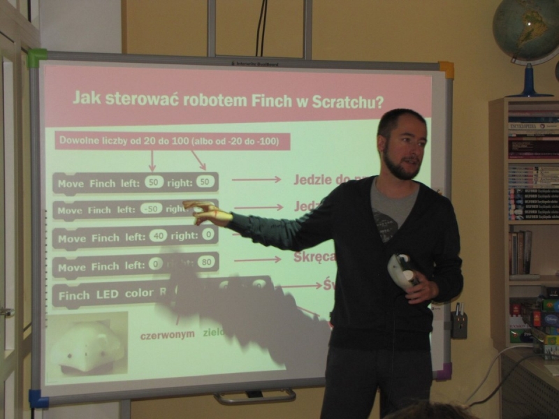 W poniedziałek, 12 października, w Miejsko-Gminnej Bibliotece Publicznej w Połańcu odbyły się interaktywne warsztaty z kodowania w edytorze Scratch z wykorzystaniem robotów Finch. Spotkania, w których wzięli udział uczniowie z Publicznego Gimnazjum w Połańcu, poprowadził profesjonalista Pan Tomasz Molęda.