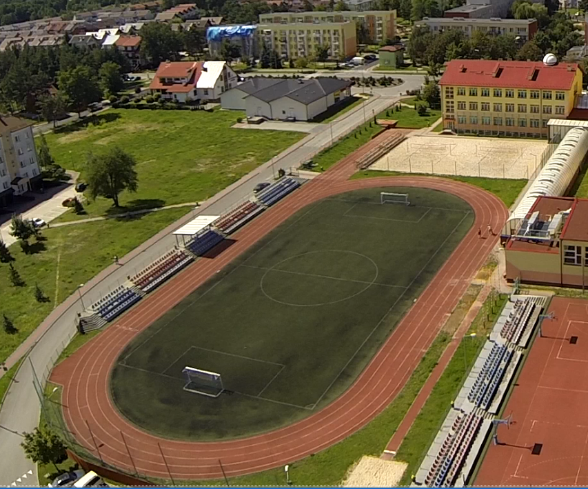 Wymianie poddano nawierzchnię z poliuretanu na nową oraz odtworzone zostały wszystkie linie istniejącego boiska.