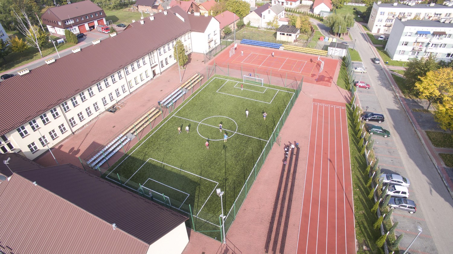 Inwestycja objęła remont boisk sportowych o nawierzchni sztucznej przy Szkole Podstawowej i Gimnazjum celem poprawy stanu technicznego obiektów oraz zwiększenia komfortu i bezpieczeństwa dzieci korzystających z obiektów. Dotychczasowa infrastruktura obiektów i urządzeń była przestarzała, kosztochłonna i wymagała stałych remontów oraz modernizacji.