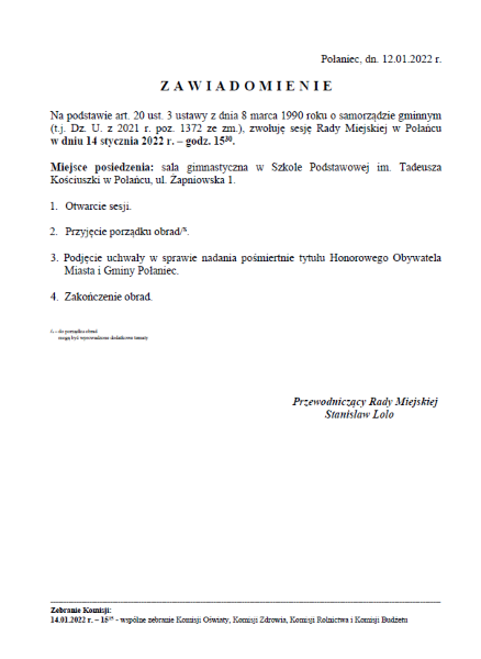 Udział w publicznej Sesji Rady Miejskiej, czy wejście na teren obiektu, na którym odbywa się Sesja Rady Miejskiej, skutkuje rozpowszechnianiem wizerunku utrwalonego podczas obrad na podkreślonych polach eksploatacji tj., strona www.portal.polaniec.eu, BIP Urzędu Miasta i Gminy w Połańcu, kanał you tube oraz gazeta w celu transparentności działań Gminy.