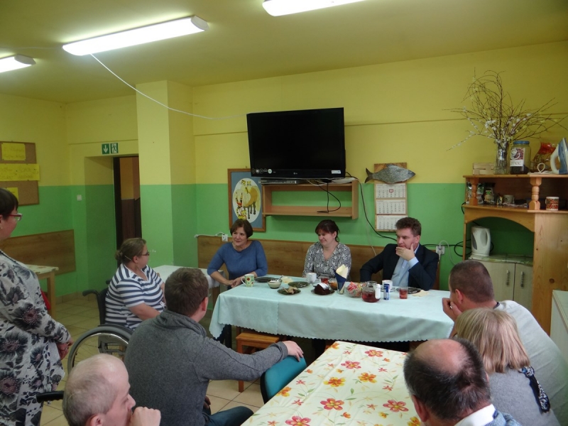 5 listopada burmistrz Miasta i Gminy Połaniec - Jacek Tarnowski oraz skarbnik - Małgorzata Żugaj złożyli wizytę w Warsztacie Terapii Zajęciowej celem omówienia bieżących spraw z działalności jednostki. Dyskusja dotyczyła aktualnych potrzeb, przygotowań do Jasełek, zainteresowań uczestników placówki, wspólnych spotkaniach, wyjazdach i kolejnej debacie w Urzędzie Miasta i Gminy. Cykliczne spotkania burmistrza z podopiecznymi, wspólne rozwiązywanie problemów buduje przyjazny klimat i daje wyraz zrozumienia dla potrzeb osób niepełnosprawnych poprzez konkretne inicjatywy na rzecz lokalnego środowiska.