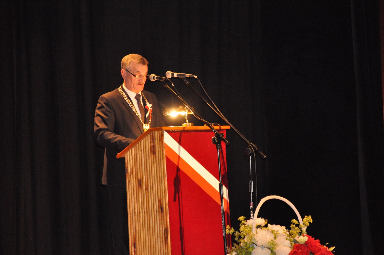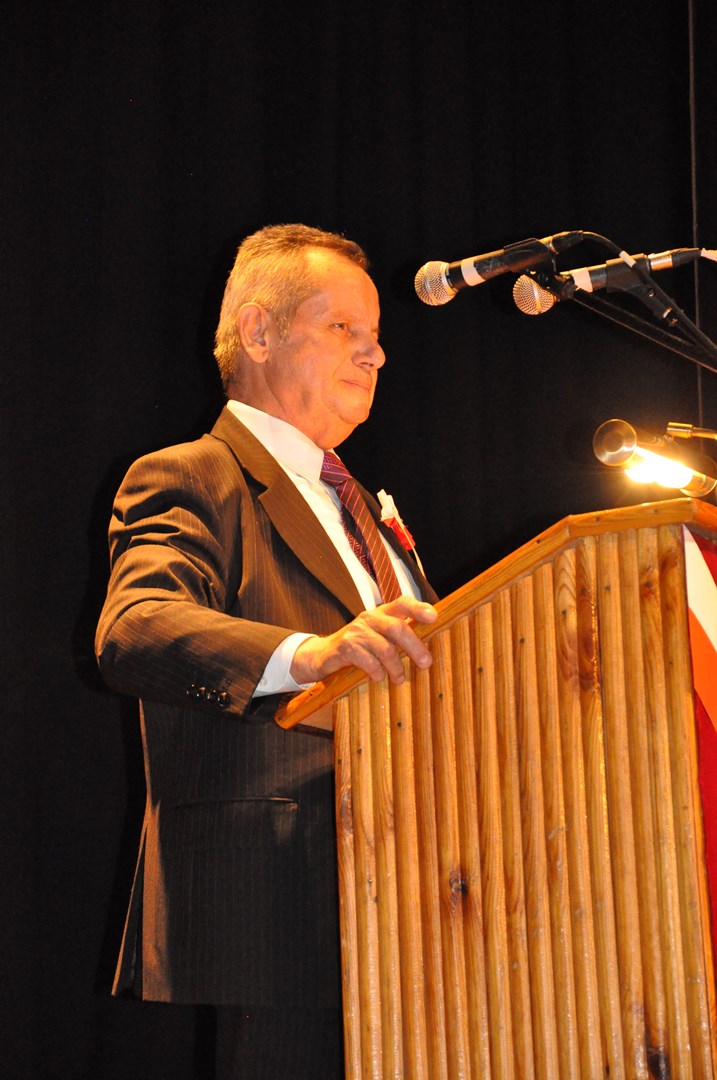 Były Przewodniczący Rady Miejskiej – Roman Łowicki zabierając głos zaznaczył, ze Święto Niepodległości jest wyrazem naszego szacunku dla symboli narodowych, które każdy Polak powinien znać i rozumieć. Stąd też podkreślił potrzebę w takich dniach pokazywania narodowych barw Polski, by biało-czerwone flagi, powiewające przed naszymi domami, dawały wyraz naszych uczuć patriotycznych względem Ojczyzny. Wezwał także do jedności i zaniechania w Polsce nieporozumień.
