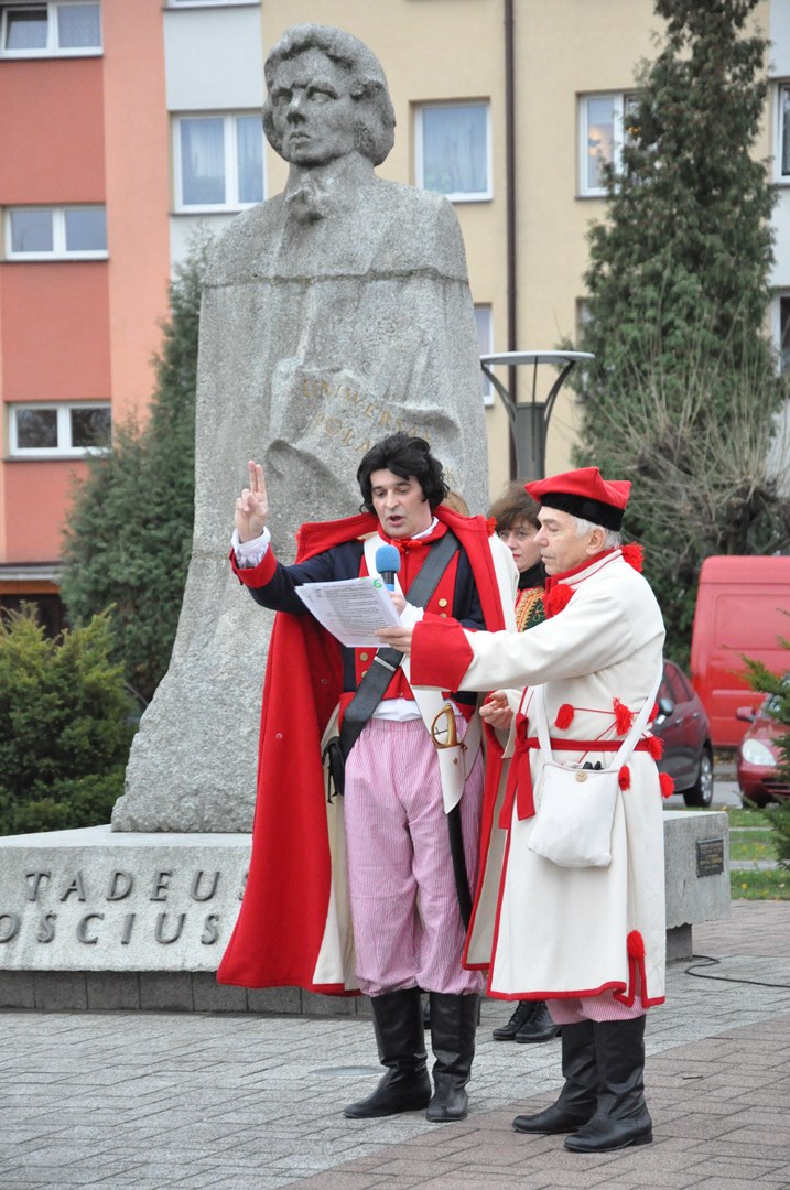 Prezes Towarzystwa Kościuszkowskiego w Połańcu – Radosław Matusiewicz zabierając głos zaprosił wszystkich obecnych pod pomnik T. Kościuszki po uroczystościach na inscenizację historyczną z czasów Insurekcji Kościuszkowskiej w wykonaniu Towarzystwa Kościuszkowskiego.