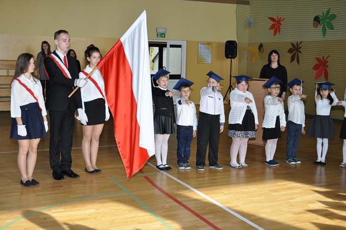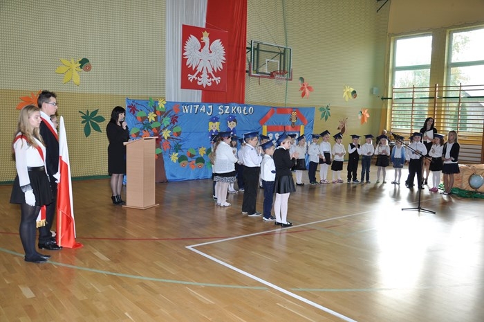 Bardzo ważnym momentem w życiu każdego młodego człowieka jest ślubowanie i pasowanie na ucznia. To niezwykłe wydarzenie miało miejsce w naszej szkole. 29 października 2015r. w tym roku szkolnym ślubowanie składało 24 uczniów. Bohaterowie dnia o godz. 9:00 zebrali się w sali gimnastycznej. Odświętnie ubrani, z uśmiechem na buzi, przedstawili zebranym gościom program artystyczny składający się z tego, czego nauczyli się od pierwszych dni pobytu w szkole.
