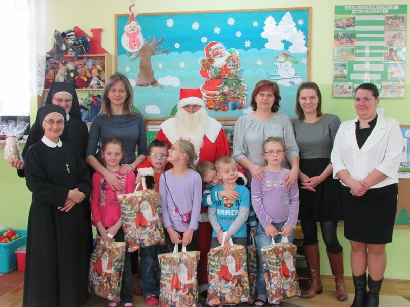 Nie lada sztuka zrobić z amatorów aktorów, a dokonała tego Pani reżyser Urszula Żurawska – nauczycielka języka polskiego. W rolę pięknej królewny o cerze białej jak śnieg wcieliła się mama – Paulina Mielnik, a przystojnym królewiczem o „posturze Pudzianowskiego” został tato - Jacek Kwapis. W postać złej i okrutnej macochy wcieliła się nauczycielka Monika Mikoda, w roli zwierciadła wystąpiła pani Halina Bieniek, a jako myśliwy wystąpił pan Wojciech Jędryka. Siedmiu przebojowych krasnoludków zagrały panie: E. Dziedzic-Godlewska, E. Strzelczyk, M. Szywała, M. Liśkiewicz, M. Kwapisz, E. Nowotko, E. Dziarmaga. Sympatycznymi zwierzątkami były: M. Antonik, K. Nowińska-Karaś, K. Rybicka, A. Bobrowska. W podróż po bajkowej krainie zabrali publiczność - bajarka i narratorzy: B. Mika, E. Wojnarowska, S. Połetek. Ten niecodzienny prezent wywołał uśmiech na twarzach publiczności. To wspaniałe wydarzenie pokazało jak przedszkole w Połańcu integruje rodziców, społeczność lokalną oraz placówki oświatowe nawet spoza terenu gminy. W ten dzień wychowankowie Domu Dziecka w Pacanowie mieli możliwość pobawić się z rówieśnikami w Przedszkolu Publicznym w Połańcu. Wiele radości sprawiło im spotkanie z Mikołajem, który wręczył im prezenty, a rodzice przedszkolaków przekazali zgromadzone podczas zbiórki środki czystości.