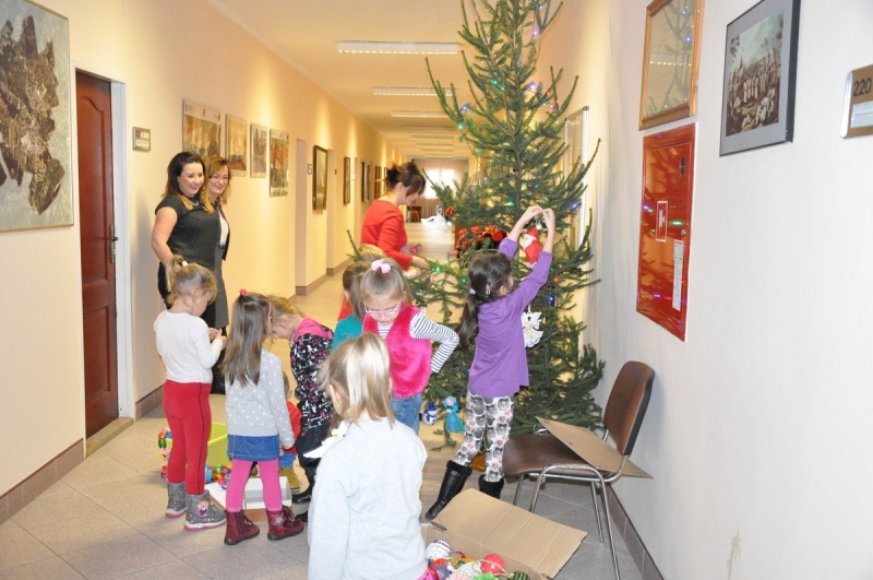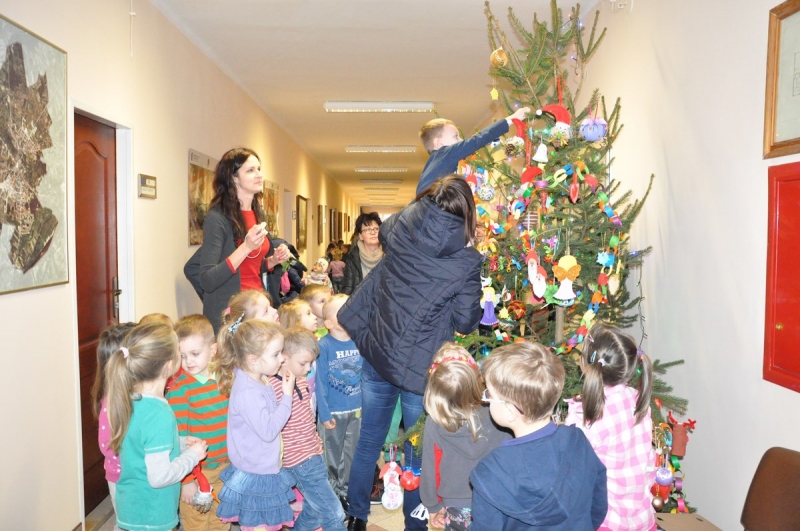 Ubieranie choinki w Urzędzie Miasta i Gminy Połaniec przez przedszkolaków to już tradycja. Każdego roku dzieci z połanieckiego przedszkola mają okazję bawić się podczas ubierania choinki. Dziecięcy gwar oraz piękne piosenki o choince i kolędy słychać było w całym budynku. Pracownicy Urzędu z panem burmistrzem na czele byli pod ogromnym wrażeniem. Piękne dekoracje: kolorowe anioły, błyszczące bombki, długie łańcuchy i wspaniałe ozdoby z papieru, przedszkolaki przygotowały pod czujnym nadzorem swoich nauczycielek. Dzięki ich ogromnej pracy i dużym zaangażowaniu tegoroczna choinka wręcz olśniewa swoim wyglądem.