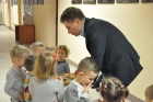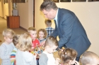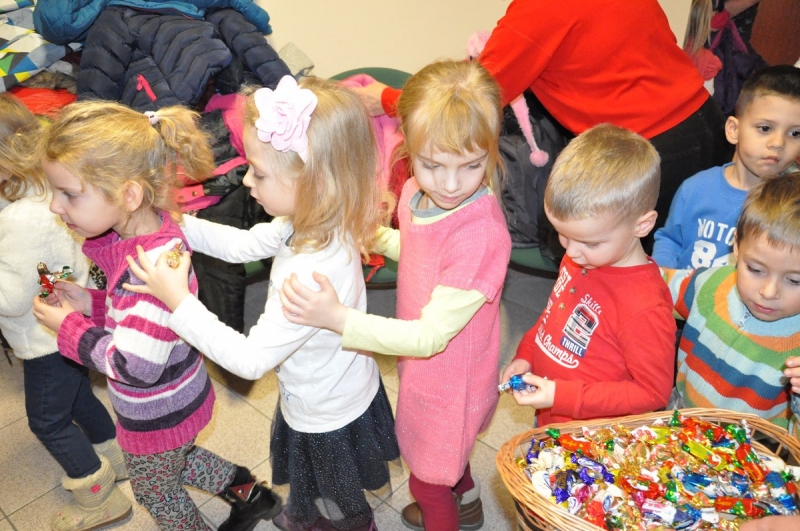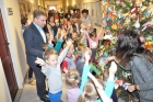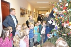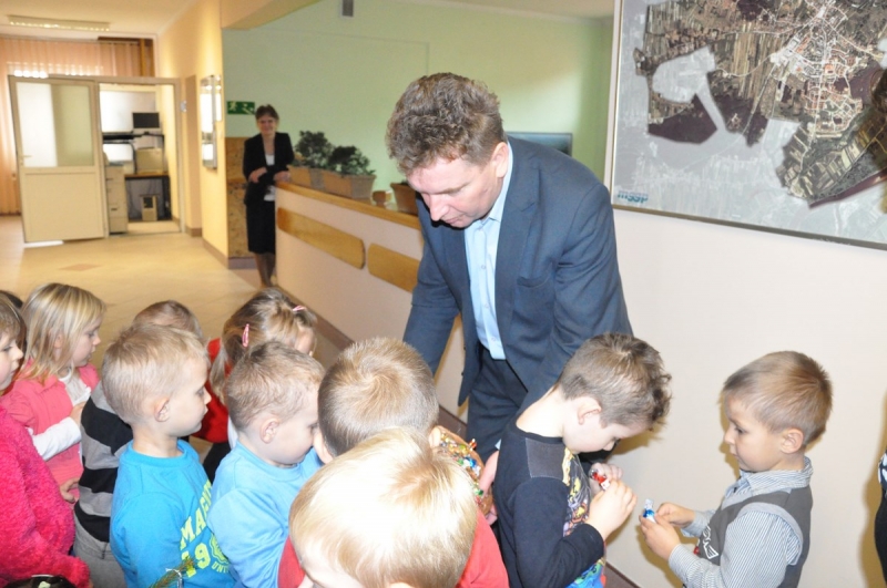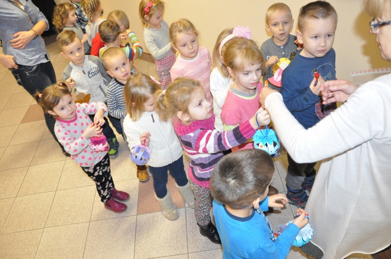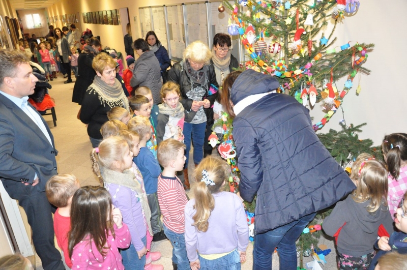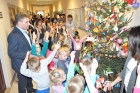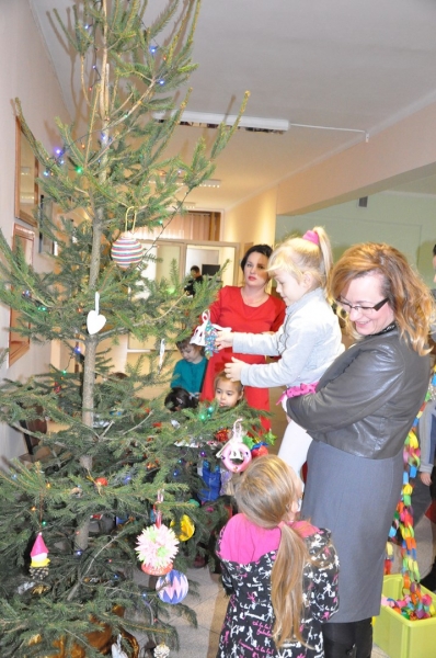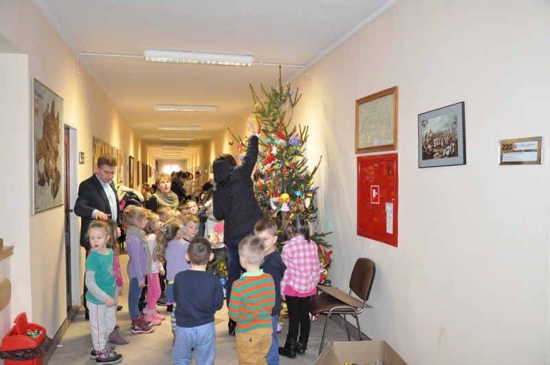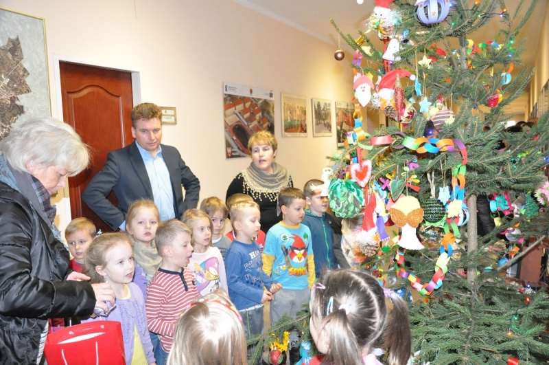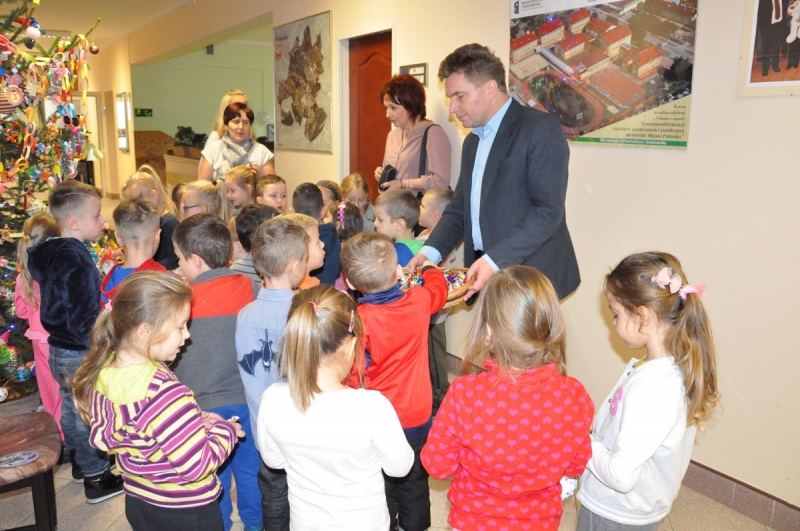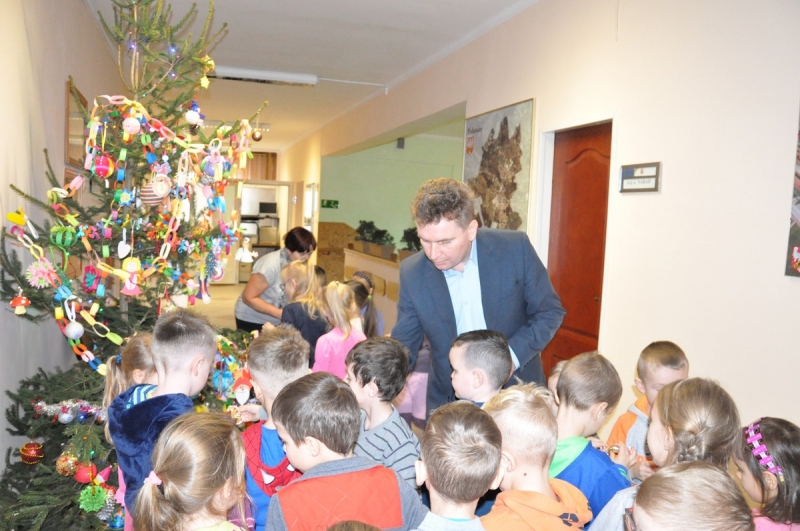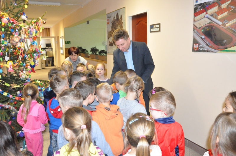 Burmistrz Miasta i Gminy Połaniec - Jacek Tarnowski, który towarzyszył najmłodszym przy ubieraniu choinki, w nagrodę za wspaniałe ozdoby i piękny śpiew obdarował dzieci słodkościami. Na ręce najmłodszych przekazał także życzenia świąteczne dla nich samych, a także ich rodzin.