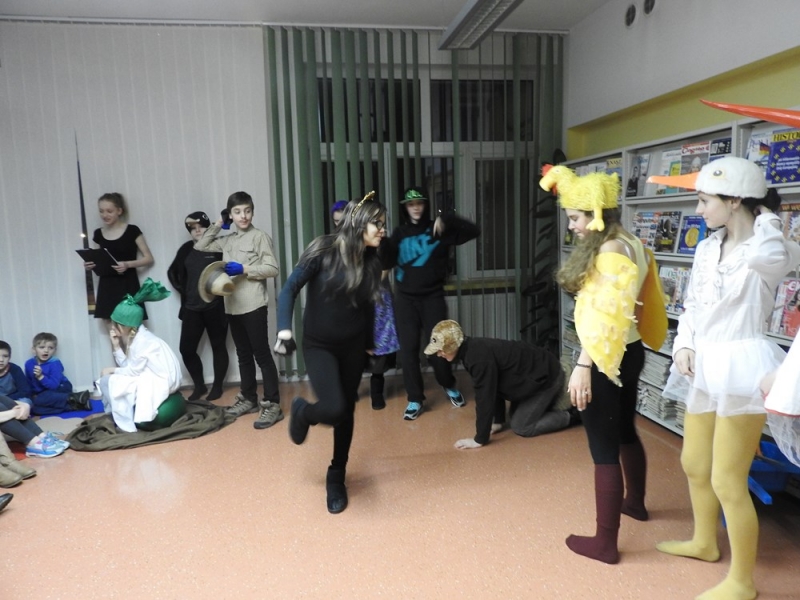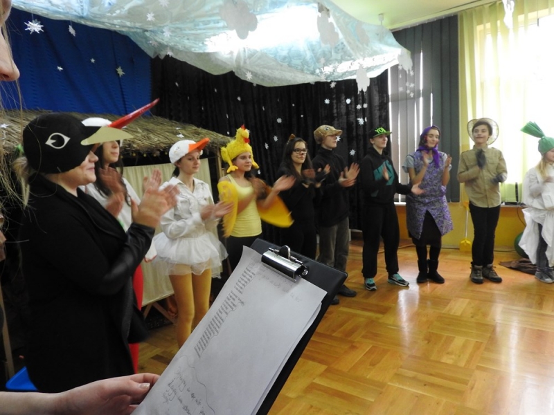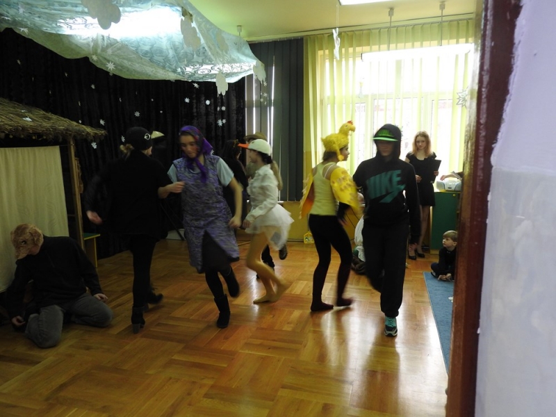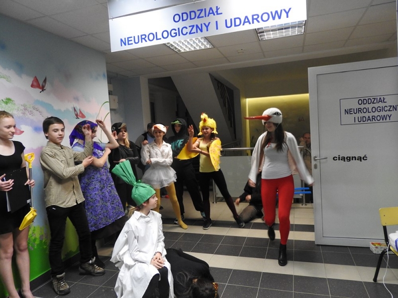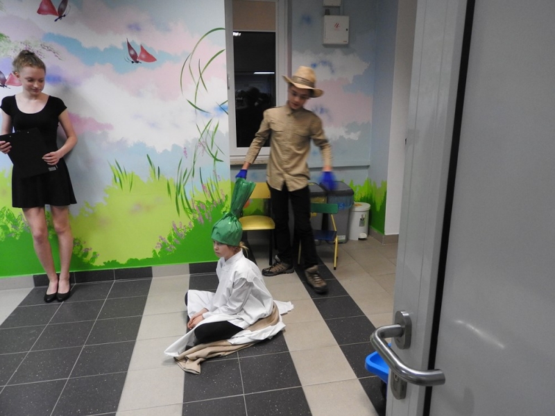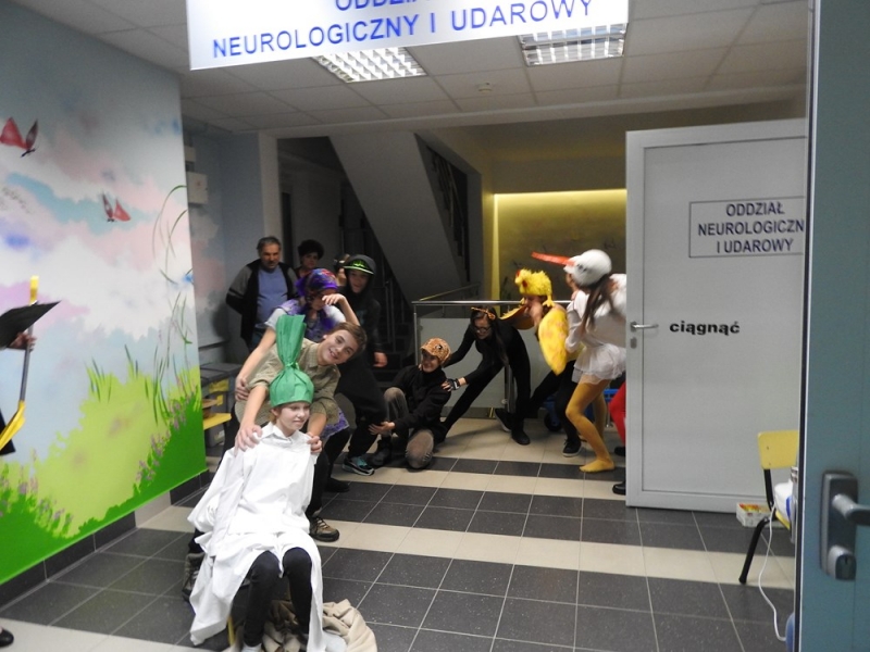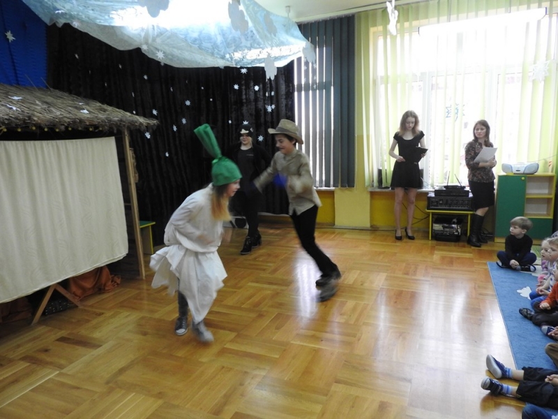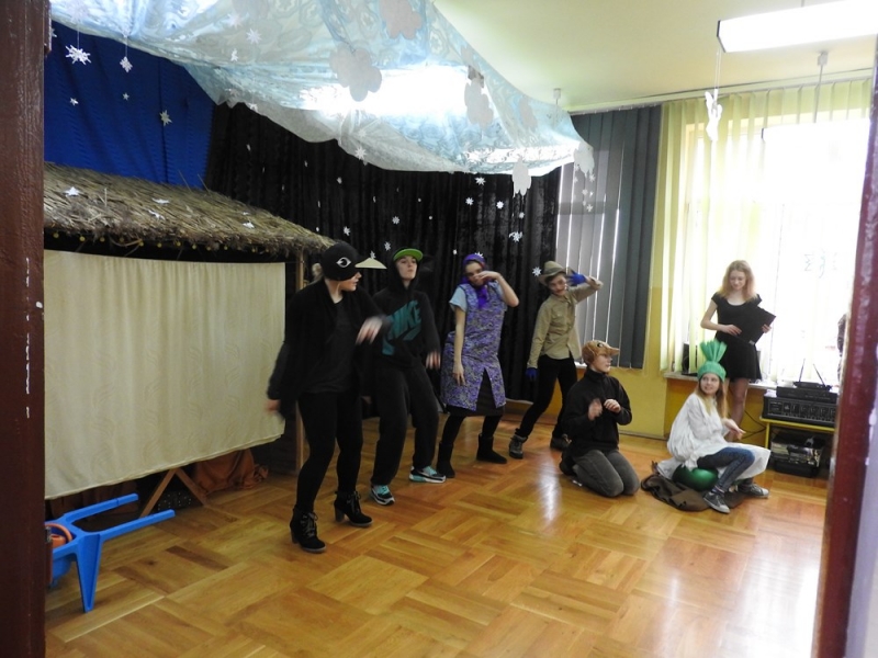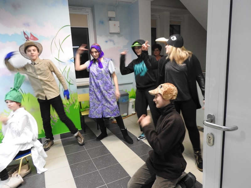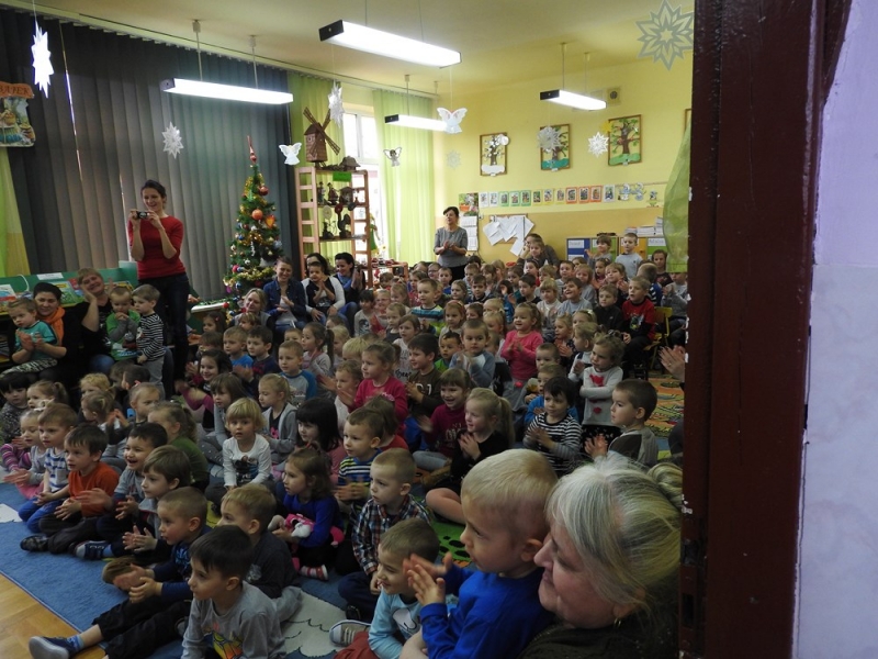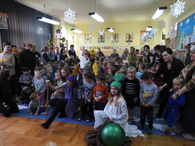 w wieku ich dziadków. Wyszło wesoło, sympatycznie i ciekawie. Dzieci, które miały okazję obejrzeć inscenizację były zadowolone, a i dorosłym się podobało. Młodym aktorom nie brakło odwagi, aby śmieszyć, przebrać się i wystąpić w kilku miejscach. Wolontariusze najpierw odwiedzili dzieci chore w staszowskim szpitalu. Było to 11 grudnia. Dwa razy wystąpili w połanieckich przedszkolach w dniu 14 grudnia, dzień później oglądały ich dzieci wraz z rodzicami w Miejsko – Gminnej Bibliotece Publicznej. Czeka ich jeszcze występ przed maluchami z „zerówki” w szkole podstawowej w dniu 18 grudnia.