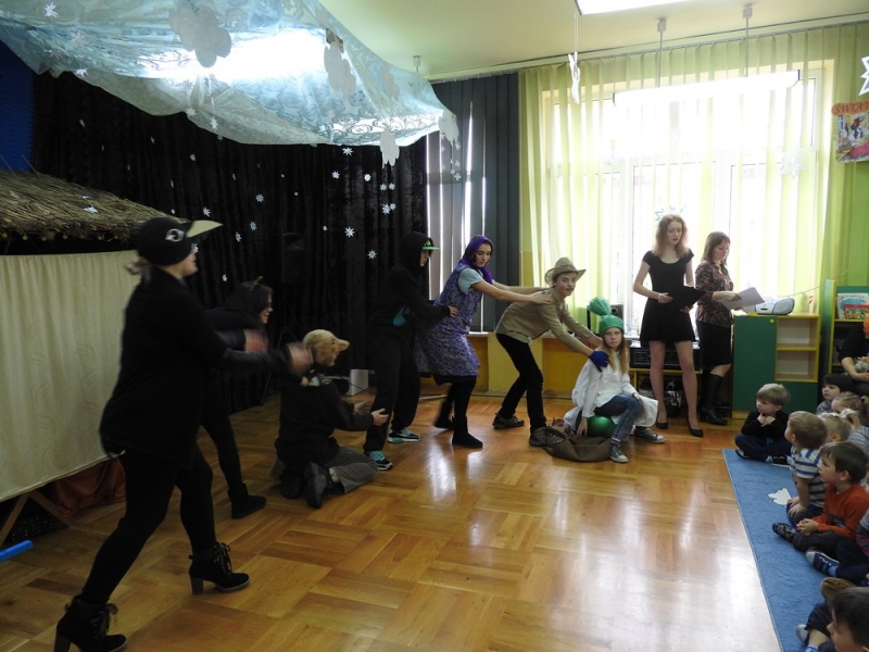 „Zasadził dziadek rzepkę w ogrodzie…”, które dziecko nie zna tego wiersza Juliana Tuwima? I chociaż znają go prawie wszystkie - jego popularność nie słabnie. Warto wiedzieć, że wiersz miał premierę w 1938 roku, a więc w tym roku mija 77 lat od kiedy możemy cieszyć się jego dowcipem, rytmem, wyliczanką, którą uwielbiają dzieci. I właśnie ten utwór wybrali wolontariusze z Publicznego Gimnazjum w Połańcu, aby zaprezentować przed świętami dzieciom z Połańca. Dwanaścioro dziewcząt i chłopców pod okiem pani Urszuli Żurawskiej, pełniącej funkcję reżysera i choreografa oraz pani Małgorzaty Sokołowskiej, opiekunki wolontariuszy przygotowało barwną inscenizację taneczno – muzyczną i wcieliło się w postacie starające się od lat wyrwać rzepkę.