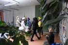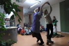 Druga grupa wolontariuszy zajmowała się upowszechnianiem tańców integracyjnych wśród młodzieży gimnazjalnej, a więc swoich kolegów. Grupa dziewcząt uczyła się kilku tańców integracyjnych takich jak: Belgijka, Kujawiak, Czekolada, Swing w uliczce, Zumba oraz innych i na dużej przerwie zachęcała gimnazjalistów do wspólnych pląsów przy muzyce. Instruktorkami tańców integracyjnych były panie: Monika Pławska i Alina Switek. Chociaż młodzieży gimnazjalnej trudno przełamać strach przed krytyką, chociaż mają wiele obaw o to, jak im pójdzie, chociaż wstydzą się tańczyć przed innymi i zdecydowanie większa ekipa przyglądała się tańczącym, to duże przerwy w gimnazjum rozbrzmiewały muzyką i integrowały coraz większą grupę młodzieży. Zdecydowanym hitem stała się Belgijka i uczniowie prosili o jej powtórki. Zamierzamy kontynuować tańce integracyjne i włączać do nich mało zdecydowanych, chociaż mających chęć – to widać, a potem może i w tym momencie niechętnych. Karnawał przecież przed nami! Przedstawienie, zajęcia warsztatowe dla wolontariuszy i tańce integracyjne realizowane były w ramach projektu „Wolontariackie wariacje kulturalne” przygotowanego przez Stowarzyszenie na rzecz dzieci, młodzieży i rodzin „Bliżej”.