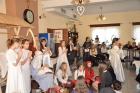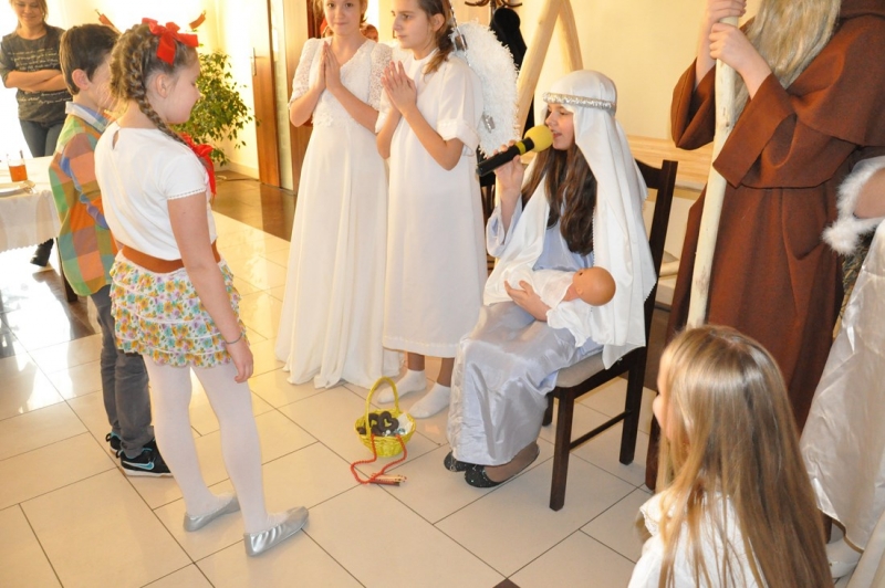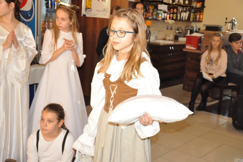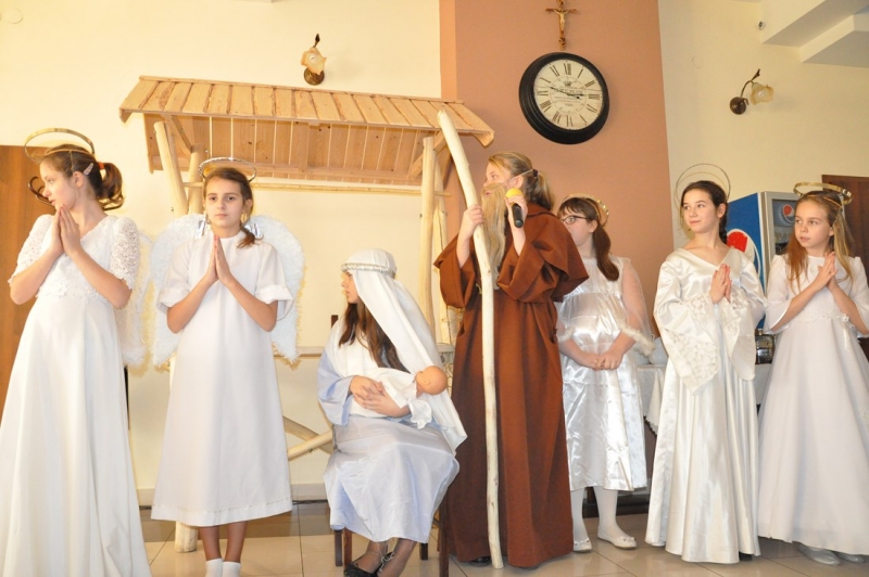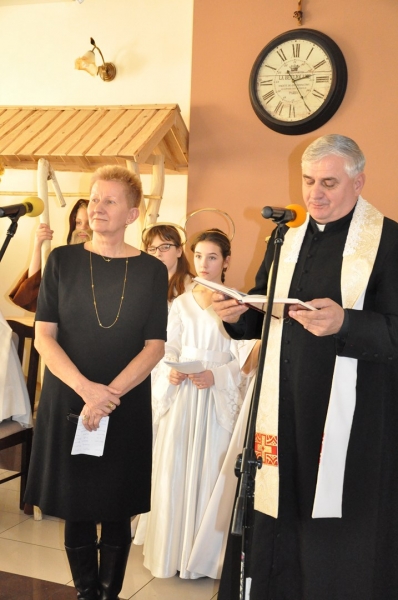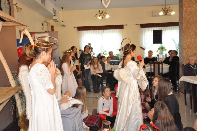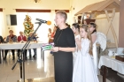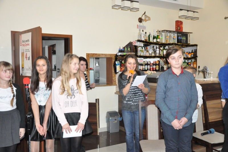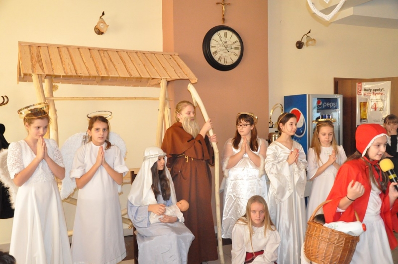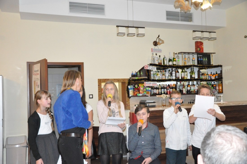 Wszystkich przybyłych na przedświąteczne spotkanie powitała Pani Anna Wolska – kierownik Ośrodka Pomocy Społecznej, która złożyła życzenia świąteczne. Następnie życzenia złożył Przewodniczący Rady Miejskiej – Stanisław Lolo, Radna – Joanna Witek i Burmistrz- Jacek Tarnowski, życząc Radosnych Świąt Bożego Narodzenia i Szczęśliwego Nowego 2016 roku. Ksiądz – Józef Grabda odczytał fragment Ewangelii i poświęcił opłatek. Następnie wszyscy uczestnicy Wigilii połamali się opłatkiem składając sobie wzajemnie życzenia.Część artystyczną uświetniły baśniowe „Jasełka” i kolędy w wykonaniu uczniów Publicznej Szkoły Podstawowej w Połańcu przygotowanych pod okiem pani Agaty Nowakowskiej i Marzeny Drożdżowskiej. Dla każdej osoby biorącej udział w świątecznym spotkaniu dzieci przygotowały ręcznie robione kartki z życzeniami. Spotkanie przebiegło w życzliwej i świątecznej atmosferze.