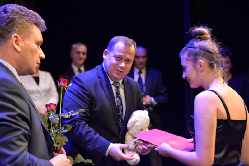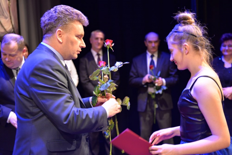 Podczas Uroczystej Sesji doceniono także wkład i zaangażowanie w rozwój kulturalny gminy Połaniec dzieci i młodzieży ze Szkoły Podstawowej w Połańcu, zespołu Placówek Oświatowych w Ruszczy oraz Centrum Kultury i Sztuki. Łącznie przyznano 43 stypendia dla dzieci i młodzieży, która swoimi imponującymi wystąpieniami artystycznymi uświetnia każdą uroczystość na terenie naszej gminy oraz poza nią. Po spektakularnych wystąpieniach artystycznych, Dyrektor Centrum Kultury i Sztuki w Połańcu – Joanna Juszczyńska zaprosiła na scenę wszystkich małych i dużych artystów z Centrum Kultury i Sztuki, którzy otrzymali z rąk Burmistrza – Jacka Tarnowskiego, Przewodniczącego Rady Miejskiej – Stanisława Lolo oraz zacnych gości stypendia artystyczne za osiągnięte wysokie wyniki w dziedzinie artystycznej i aktywną promocję gminy Połaniec. Podziękowano również instruktorom za poświęcony czas i pracę z młodymi artystami. Z kolei Burmistrz Miasta i Gminy Połaniec - Jacek Tarnowski i Przewodniczący Rady Miejskiej - Stanisław Lolo w podziękowaniu za wsparcie działań kulturalnych otrzymali upominki od młodzieży.