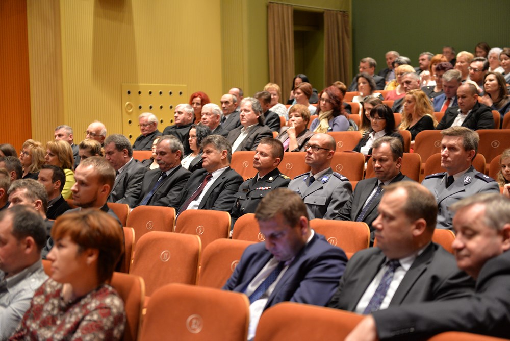 Następnie głos zabrał Burmistrz Miasta i Gminy Połaniec – Jacek Tarnowski, który po przywitaniu zaproszonych gości podziękował wszystkim osobom, które przez wiele lat pomagają gminie Połaniec, tym samym przyczyniając się do jej znacznego rozwoju. W swym przemówieniu podkreślał, że to co zostało dotychczas osiągnięte było możliwe dzięki współpracy bardzo wielu osób i instytucji na rzecz lokalnej społeczności – w tym współpracy mieszkańców, władz gminy Połaniec z władzami województwa świętokrzyskiego oraz pomyślnie pozyskanym środkom zewnętrznym na poszczególne cele. Te słowa podziękowań za okres wytężonej pracy, współpracy, pomocy dla samorządu Połańca zostały skierowane w stronę marszałka województwa, pracowników urzędu marszałkowskiego na ręce obecnego na sali Członka Zarządu – Marka Szczepanika. Burmistrz podkreślił, że Miasto i Gmina Połaniec optymalnie wykorzystała możliwości, dzięki dużej pomocy od marszałka. Podziękowania skierowane zostały dla Prezesa WFOŚiGW – Andrzeja Pałysa, dla człowieka który pomaga każdemu samorządowi poprzeć słowo, zaangażowanie czy poradę. W przypadku Połańcu poświęcił niejednokrotnie wiele czasu, by nauczyć zdobywać środki dla rozwoju gminy. Burmistrz przedstawił owoce współpracy ze starostwem powiatowym dziękując na ręce starosty i Radnych Powiatowych za pomoc osobistą i zaangażowanie dla Połańca. Za bezpieczeństwo mieszkańców złożono podziękowania służbom mundurowym na ręce obecnych przedstawicieli policji i straży za mocną współpracę, wykonaną pracę w ramach wspólnie realizowanych działań i pracę, która przyczynia się do zapewnienia bezpieczeństwa mieszkańcom całego powiatu. Zostały złożone także deklaracje ze strony samorządu połanieckiego o dalszą dbałość o zapewnienie sprzętu i wyposażenia dla jednostek. Padły słowa podziękowań dla przedsiębiorców, przedstawicieli zakładów pracy za trud funkcjonowania gminy na ręce prezes największego zakładu na terenie Połańca – Alfredy Świtek. Słowa wdzięczności za dobre słowo burmistrz złożył księżom proboszczom. Za współpracę, odpowiednie decyzje podziękowano przewodniczącym osiedli, sołtysom, mieszkańcom. Szczególne słowa uznania zostały skierowane dla Przewodniczącego Rady Miejskiej i całej Rady Miejskiej w Połańcu. Dla kierownik biura ARiMR słowa uznania za pomoc rolnikom. Wszelkie podziękowania popłynęły do pracowników gminy i jednostek oraz dyrektorów i kierowników jednostek działających na terenie gminy na ręce Skarbnik – Małgorzaty Żugaj. Jak wyjaśnił burmistrz duże środki finansowe przekazywane są na działalność jednostek są po to, aby wychowanie, oświata, kultura, dbanie o osoby chore, sport stały na najwyższym poziomie. Za współpracę, za wzajemne wspieranie się dwóch gmin podziękowano gościom z gminy Borowa z prośbą o przekazanie słów uznania mieszkańcom gminy Borowa.