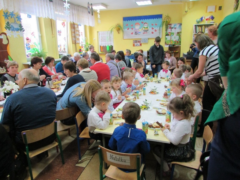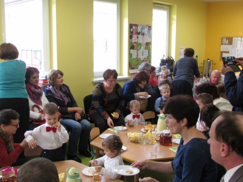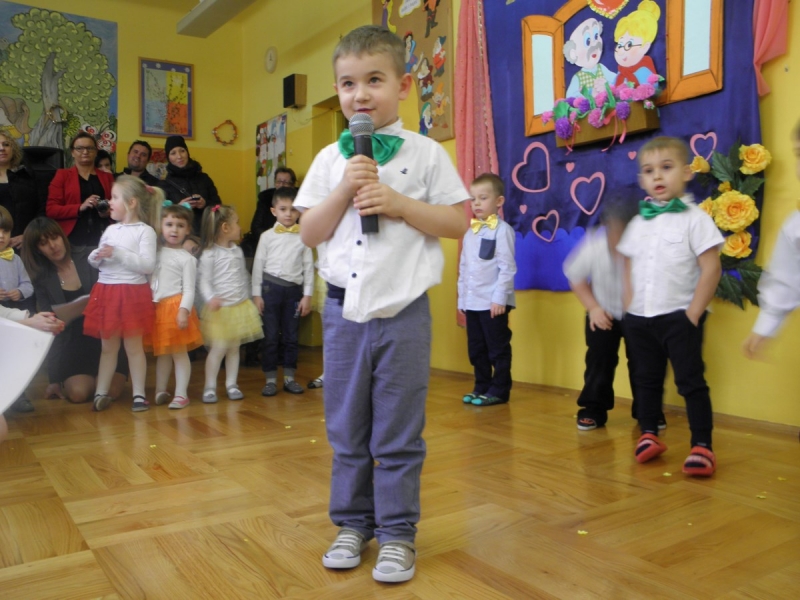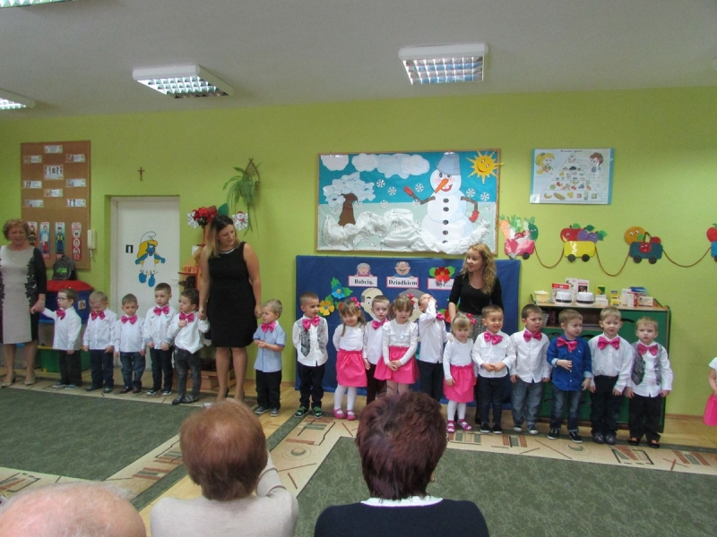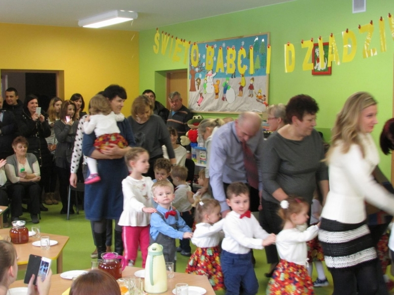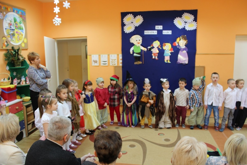 Przedszkolaki pod opieką swoich nauczycieli przygotowały programy w różnych formach artystycznych. W większości były to wiersze i piosenki okolicznościowe, pokazy taneczne, ale także piękne inscenizacje: „Bajka”, „Jasełka” czy „Bal karnawałowy”, na którym tańczyli wszyscy honorowi goście ze swoimi wnuczętami. W trakcie uroczystości Babcie i Dziadkowie mogli podziwiać swoje pociechy czyli najlepszych aktorów na świecie! Mali artyści z przejęciem odtwarzali swoje role, a czcigodni goście ze wzruszeniem odbierali czułe słowa, kierowane pod ich adresem. Dzieci także obdarowały swoich „dziadków” własnoręcznie wykonanymi upominkami. Frekwencja jak co roku dopisała! Dzieci poczuły się prawdziwymi gospodarzami placówki przedszkolnej. Spotkania upłynęły w miłej i serdecznej atmosferze. Występy przedszkolaków były okazją by wyrazić kochanym Babciom i Dziadkom, swoje podziękowania - za trud włożony w ich wychowanie, opiekę i cierpliwość, za to że są opoką dla nich, uczą na czym polega, dobro, miłość rodzina czy przyjaźń. To był szczery dowód wdzięczności wnuków. Po występach goście oraz dzieci zostali zaproszeni na przygotowany przez rodziców słodki poczęstunek.