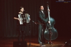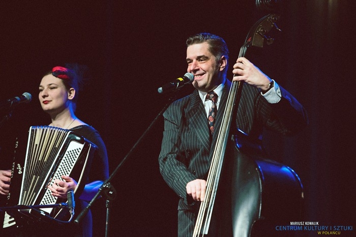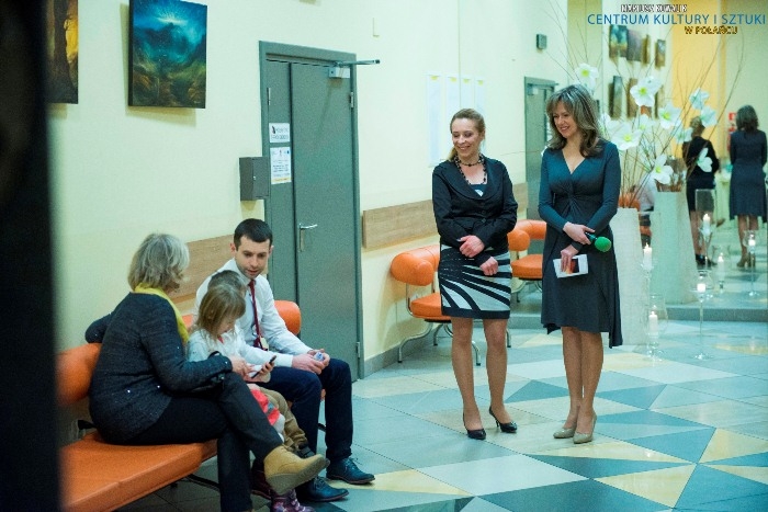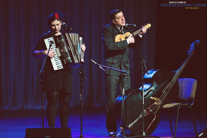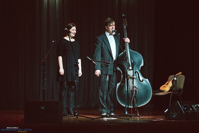 Pierwsze spotkanie w ramach projektu KULTURA ZA DYCHĘ bardzo przypadło publiczności do gustu. Wspaniała muzyka, humor na poziomie i urzekające malarstwo - tak w skrócie można opisać niedzielny koncert z wernisażem Diany Żarów. Obrazy artystki dawały wiele możliwości interpretacyjnych, dzięki czemu zmysł estetyczny każdego z uczestników wernisażu został w pełni zaspokojony. Autorską wizytówką znakomitego showmana Tomka Grdenia i multiinstrumetalistki Malwiny Paszek były znane i lubiane przeboje okraszone żartobliwymi tekstami. Duet mężczyzny z kontrabasem i kobiety z akordeonem oczarował publiczność wciągając wszystkich do zabawy i wspólnego muzykowania. Solidna dawka humoru i dobrej rozrywki została nagrodzona wielkimi brawami. To dopiero początek. Zapraszamy na kolejne, wiosenne spotkanie z KULTURĄ ZA DYCHĘ.