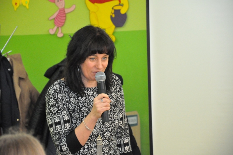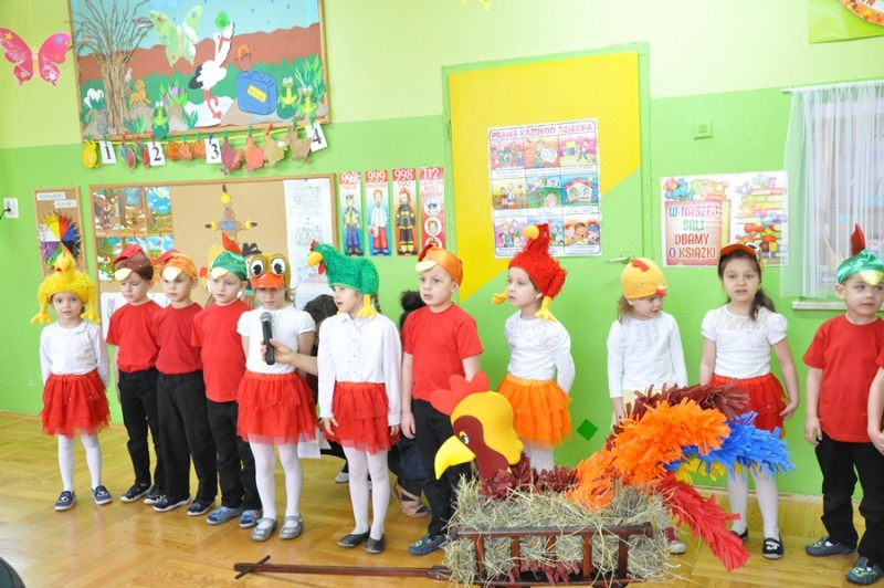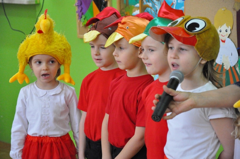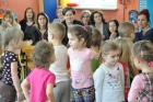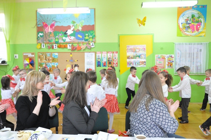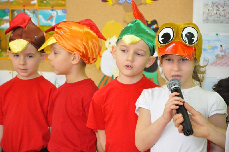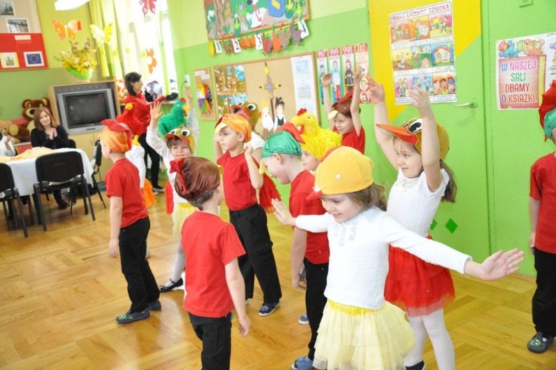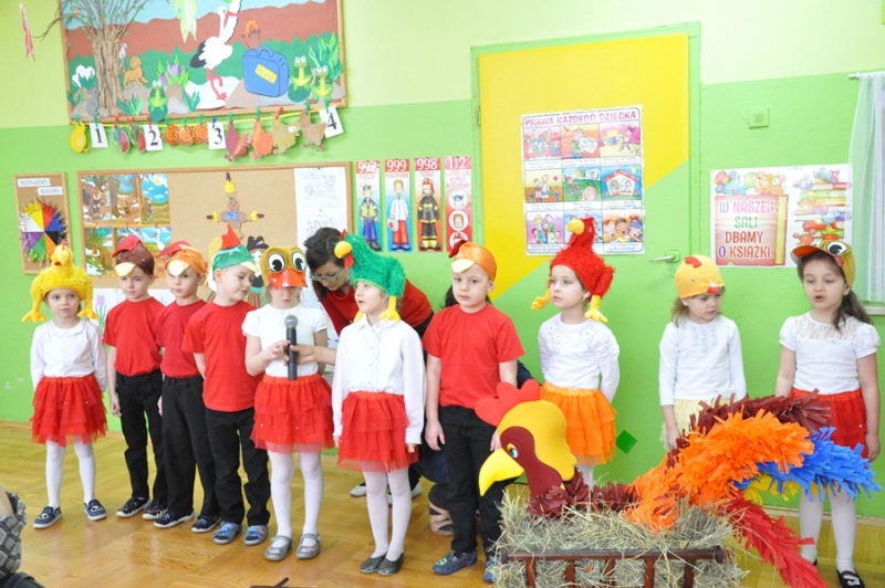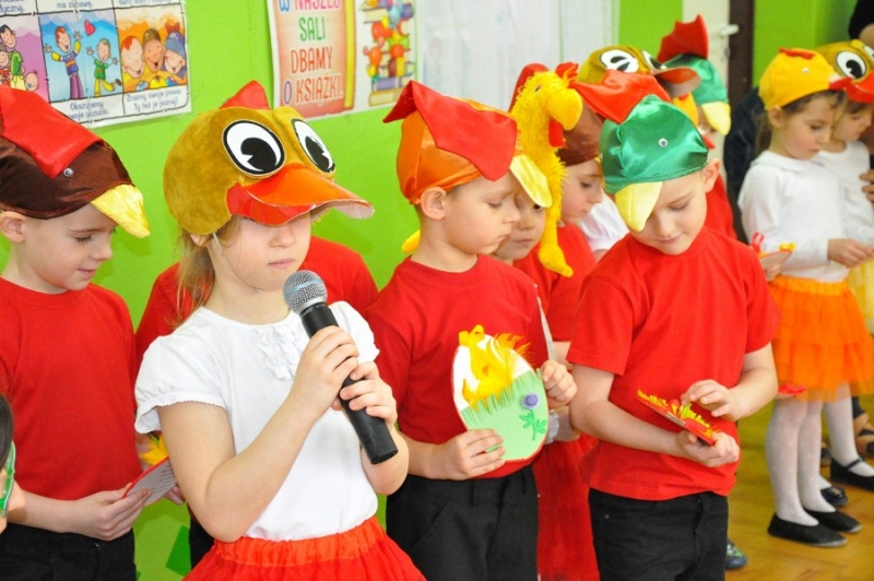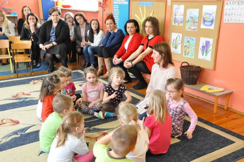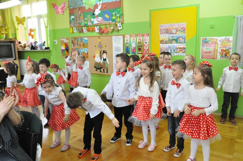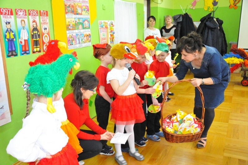 Na początku spotkania głos zabrała Pani Anna Kaniszewska – Dyrektor Przedzkola Publicznego w Połańcu, która gorąco powitała zaproszonych gości i zaprosiła do obejrzenia prezentacji filmowej związanej z działalnością przedszkola. Myślą przewodnią prezentacji było motto przedszkola: „Dajmy dzieciom słońce, żeby łez nie było, dajmy dzieciom radość, dajmy dzieciom miłość”. Film został przygotowany przez Panią Ewelinę Wojnarowską. Spotkanie uświetniły występy przedszkolaków. Dzieci z grupy „Słoneczka” zatańczyły rytmiczną „Poleczkę”, a w atmosferę zbliżających się Świat Wielkanocnych wprowadziły gości dzieci z grupy „Smerfy” prezentując inscenizację „Wieziemy kogucika” oraz taniec „ Kurnik”. Przedszkolaki przekazały również życzenia z okazji zbliżających się świąt i wręczyły wszystkim zgromadzonym symboliczne upominki. Występy wszystkich dzieci zostały nagrodzone brawami oraz słodkim poczęstunkiem. Kolejnym punktem spotkania była prezentacja multimedialna dotycząca „Odimiennej metody nauki czytania” autorstwa dr Ireny Majchrzak, którą od kilku lat realizujemy w naszym przedszkolu. Prezentację przygotowały: Wicedyrektor Przedszkola Publicznego w Połańcu - Pani Beata Mika oraz Pani Monika Szywała. Celem prezentacji było zapoznanie uczestników spotkania z założeniami metody, z jej poszczególnymi etapami, narzędziami oraz sposobami realizacji. Odimienna metoda nauki czytania należy do innowacyjnych projektów edukacyjnych, zatwierdzonych przez MENiS. Pozwala na kształcenie umiejętności czytania już z dziećmi trzyletnimi. Nauczyciel prowadząc zabawy i gry prowokuje dziecko do samodzielnego rozumowania alfabetycznego szyfru. Początkiem jest imię dziecka, które staje się słowem otwierającym świat pisma.