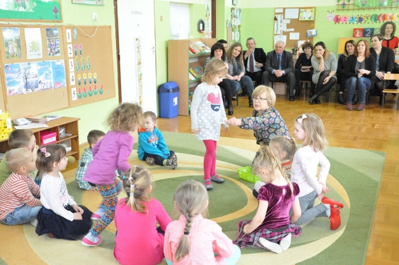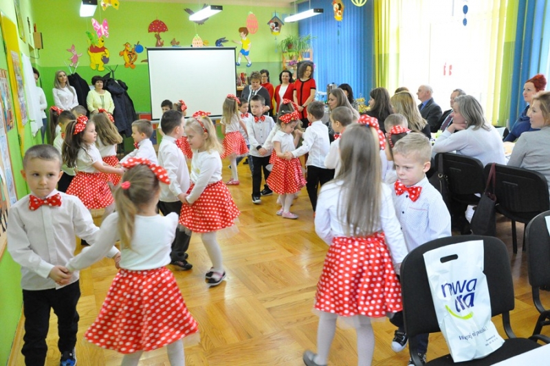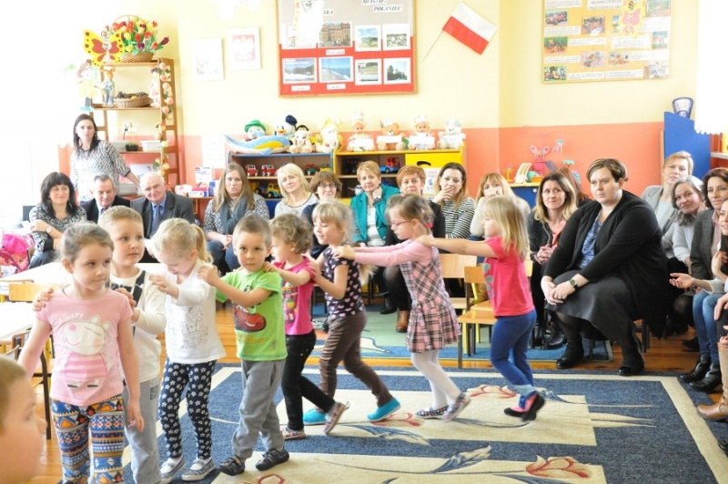 Po odwiedzinach w salach nadszedł czas na wymianę spostrzeżeń, dyskusję uczestników oraz podsumowanie spotkania. Głos zabrał Wiceprzewodniczący Rady Miejskiej – Pan Andrzej Wawrzyniec i Pan Zdzisław Kwiatkowski którzy złożyli na ręce Pani Dyrektor gorące podziękowania za zaproszenie oraz długoletnią współpracę. Podkreślili duży potencjał Przedszkola Publicznego w Połańcu oraz zaangażowanie wszystkich pracowników w jego działalność. Dostrzegł wiele innowacyjnych działań przedszkola, jak również dbałość o nasze narodowe tradycje.