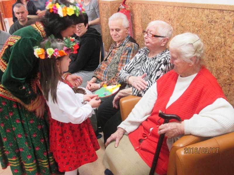 Dnia 17 marca w naszym Domu zrobiło się bardzo wesoło. A to za sprawą wizyty przedszkolaków z Przedszkola Publicznego w Połańcu wraz z panią Dyrektor Anną Kaniszewską oraz paniami przedszkolankami. Mili goście przedstawili nam wiele pięknych wierszy i piosenek o tematyce świąteczno-wiosennej. Wszyscy byli zachwyceni wspaniałymi strojami ludowymi naszych gości. Na ręce pani Kierownik ŚDS, wszystkich uczestników i pracowników zostały złożone życzenia wielkanocne, za które bardzo dziękujemy!!!